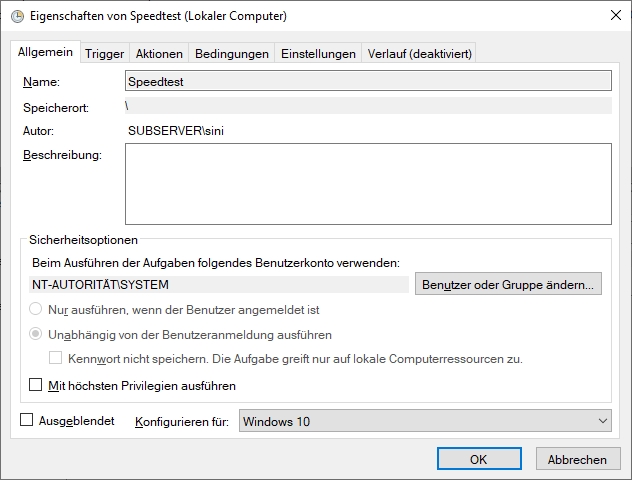 - Wenn nun die Datei "Speedtest.log" existiert und sich in dieser Werte befinden, ist alles korrekt