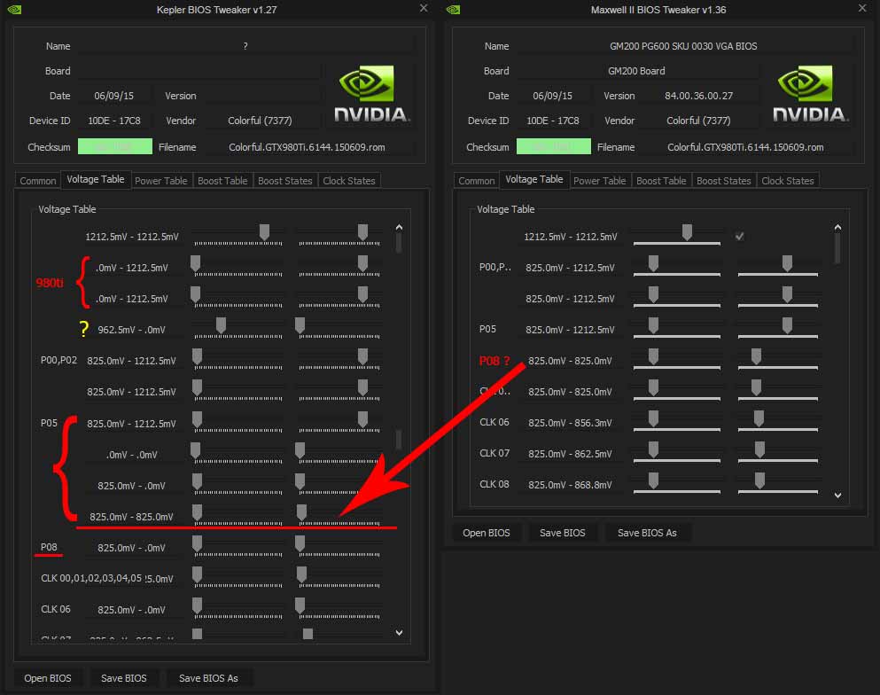 -Weiß jemand welchen State (P0 oder P8) die Grafikkarte während des Bootvorgans hat bzw. gibt es eine Möglichkeit die Karte noch zu flashen falls ich die Spannung bei P8 zu stark verringere?