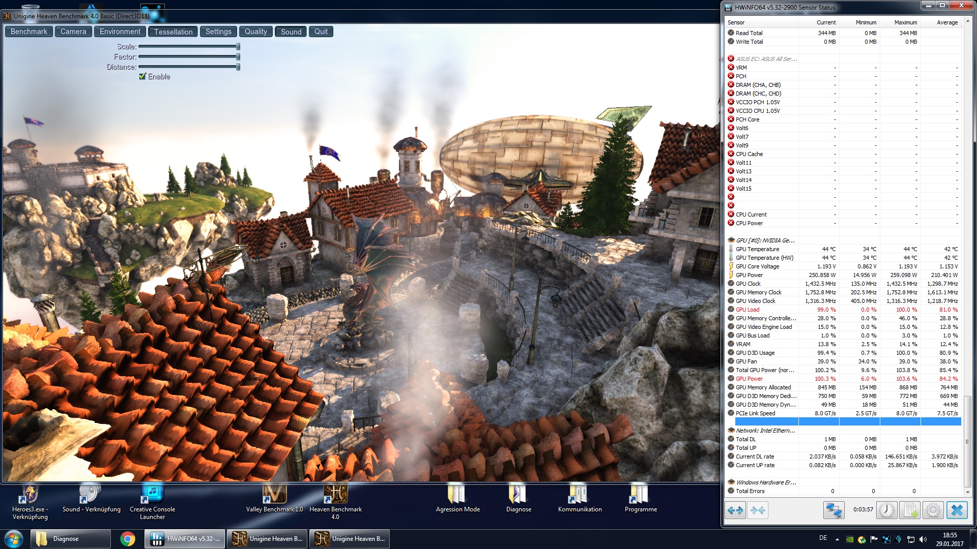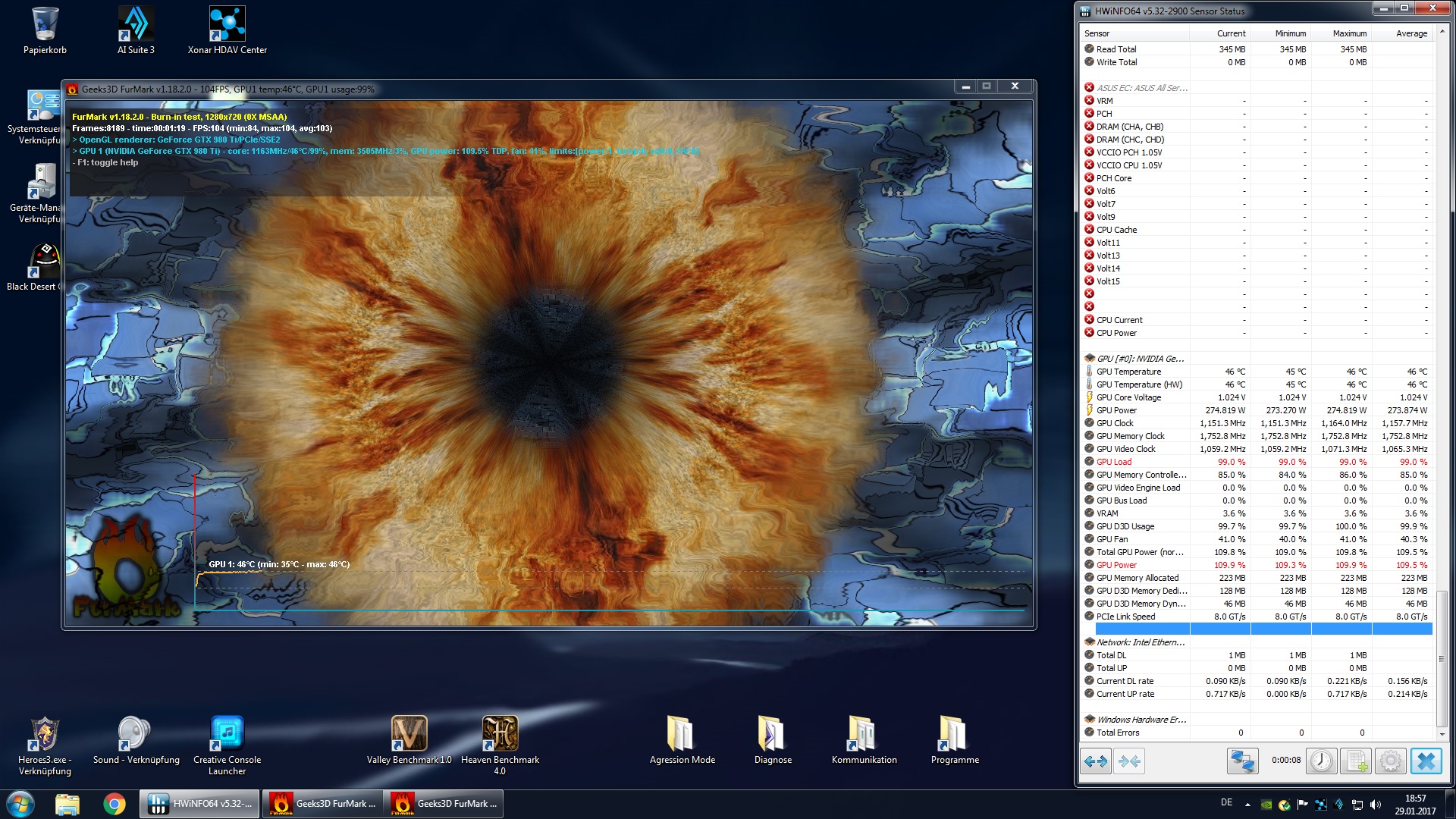 Anbei mal zwei Screens der PNY unter Last bei Heaven und Furmark (Xtreme Burn-In):