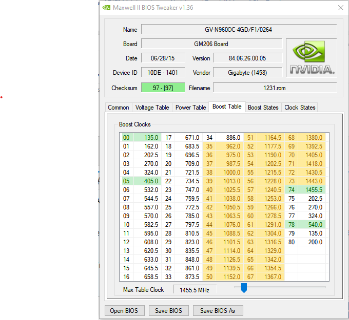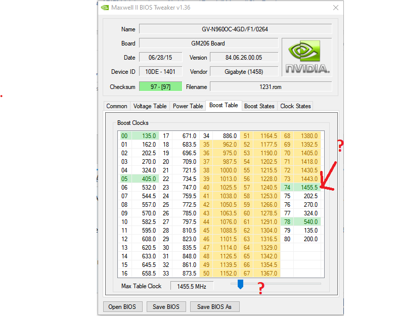 Was ich aber noch nicht verstehe ist die eingestellte Boost Clock im Tab "Common".. Müsste diese nicht bei 1493,5 liegen, wie bei den unteren den Tabs "Boost States" und "Boost Table"?
