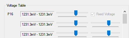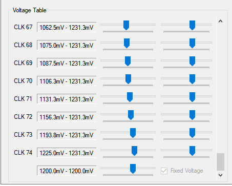 Zwar habe ich die 3 Zeilen bei Voltage Table auf 1281,3 gestellt, aber die Spannung ändert sich nicht. Sie bleibt unverändert auf 1,212 Volt. Evtl. hat jemand eine Lösung für mich?