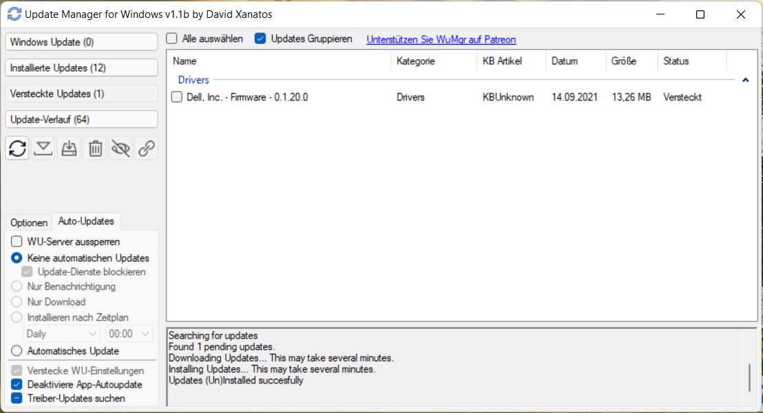 Und am 30.8. wurden drei Treiberupdates für "Intel SoftwareComponent" installiert(1.41.2021.121 1.62.321.1 2109.0.52.0)