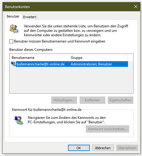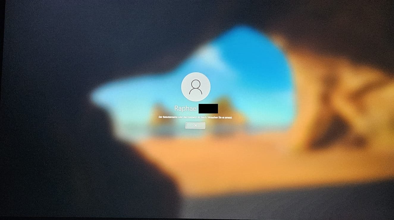 Der Benutzername oder das Kennwort ist falsch. Versuche es erneut.