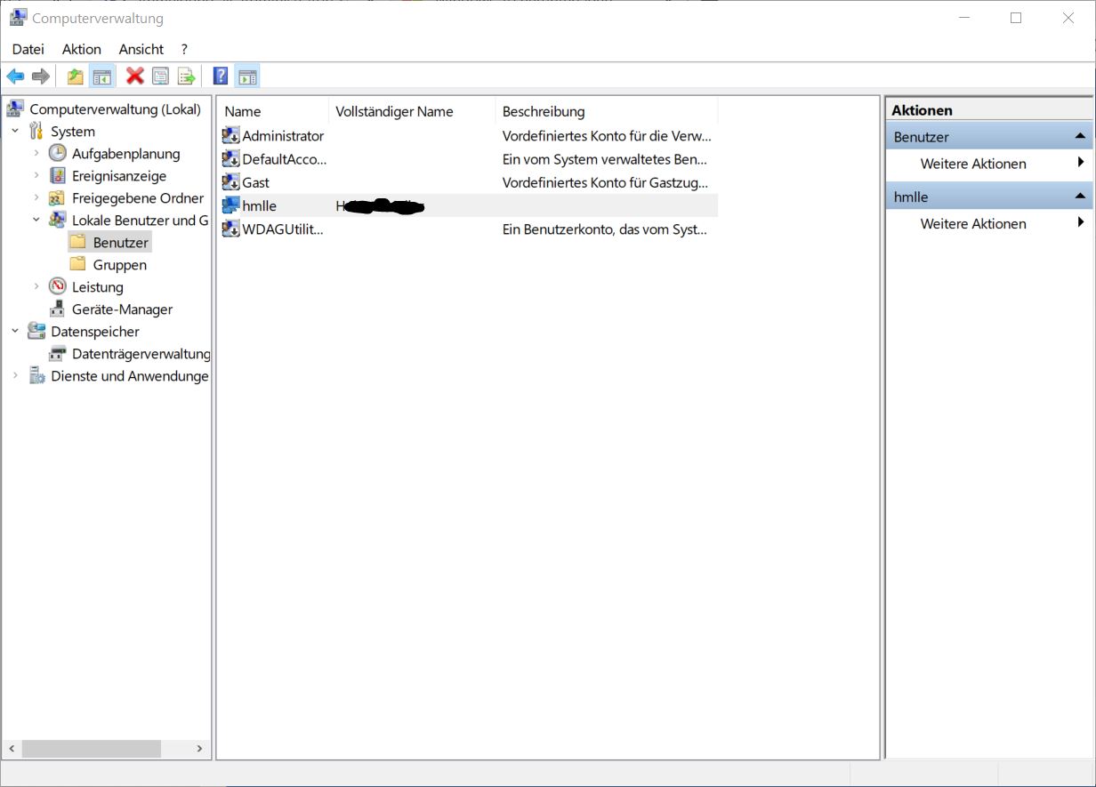 Ich bin als Admin mit dem MS Konto Passwort bei Windows angemeldet und mein Benutzername, die ersten 5 Buchstaben der Outlook Mail-Adresse sieht man da auch.