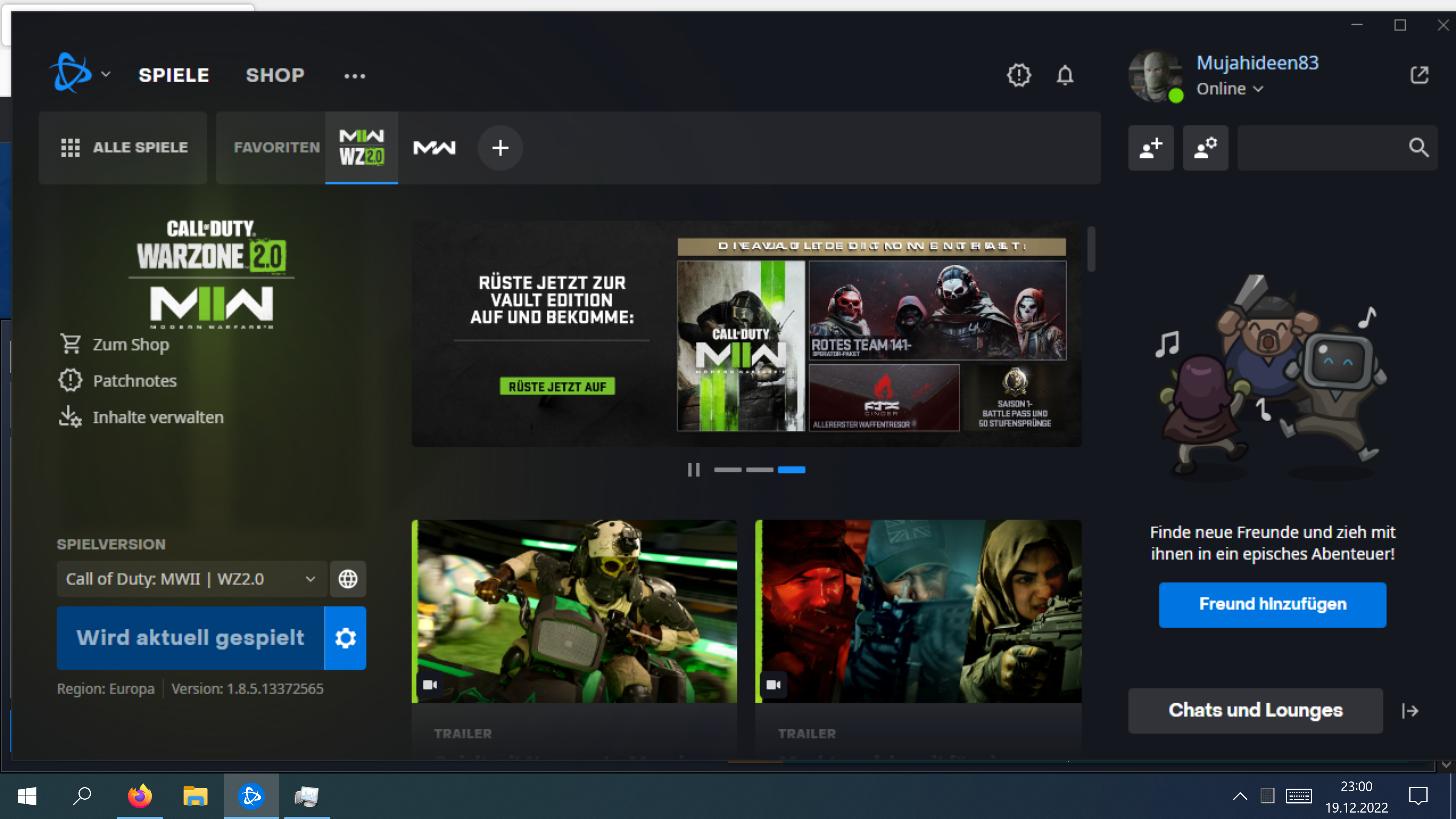 Ich komme seite heute nicht mehr ins Spiel Modern Warfare II. Bei mir läuft das Spiel über Blizzard Battle.net. Ich habe den Router und PC neu gestartet. Sämtliche Updates gemacht: Grafikkartentreiber, Windows, und die Spieleupdates. Habe sogar das vorherige Spiel Vanguard mal deinstalliert und neu installiert. Scannen und Reparieren gemacht und bleibe immer bei allen Call of Duty Spielen von Battle.net die ich besitze im Status "Anmeldung beim Onlinedienst" hängen.