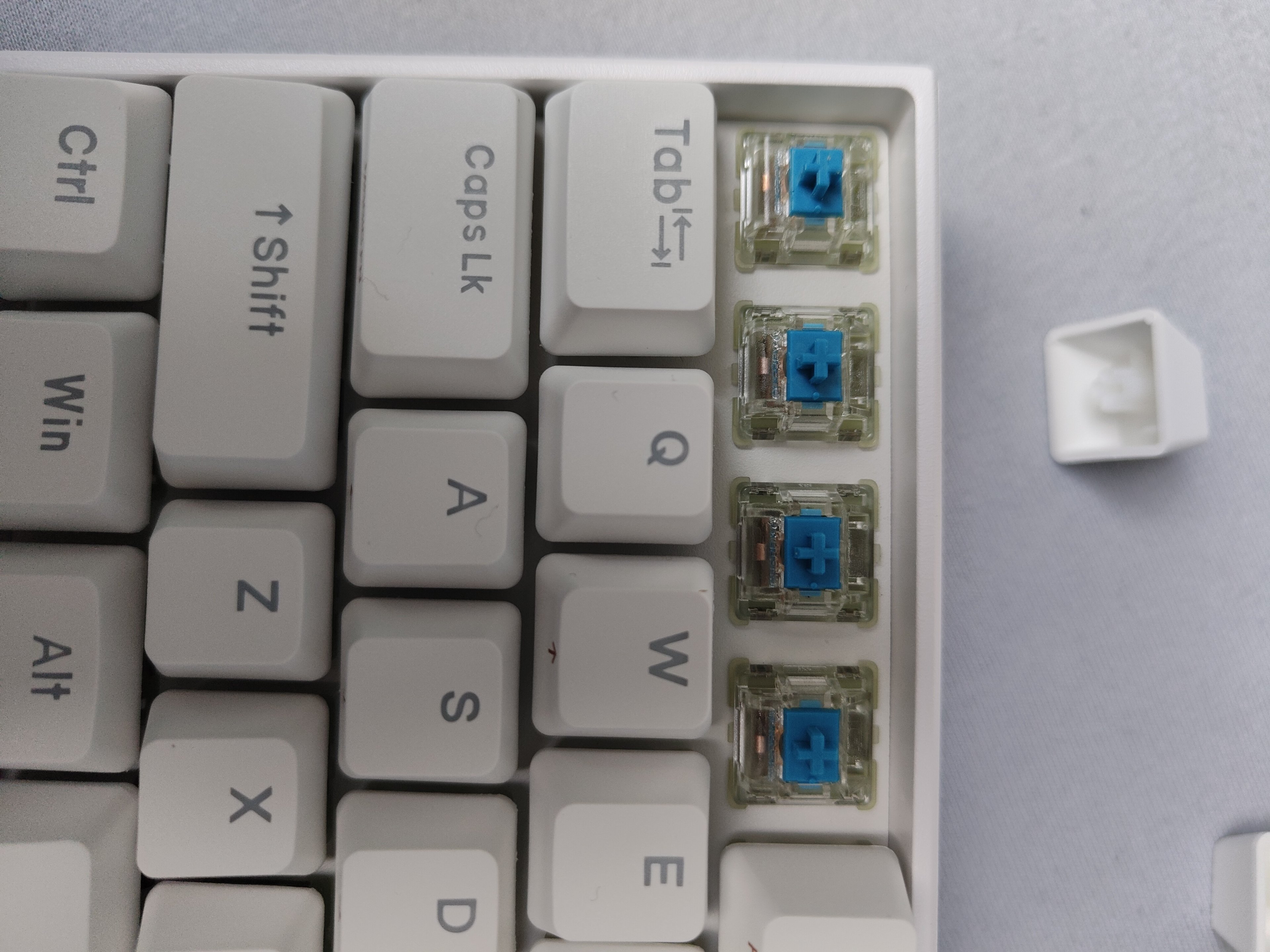 ich habe mir gestern das anne pro 2 mit gateron blue switches gekauft (für 126€ bei amazon). heute habe ich die tastatur bekommen. mir ist leider augefallen das amazon anscheinend den aufkleber überklebt hat. man kann erkennen das beim ersten aufkleber cherry blue steht. anne pro 2 mit mx cherry blue kostet 81€. jetzt wollte ich mal fragen, wie man an der tastatur erkennen kann ob es gateron blue switches hat oder mx cherry blue?