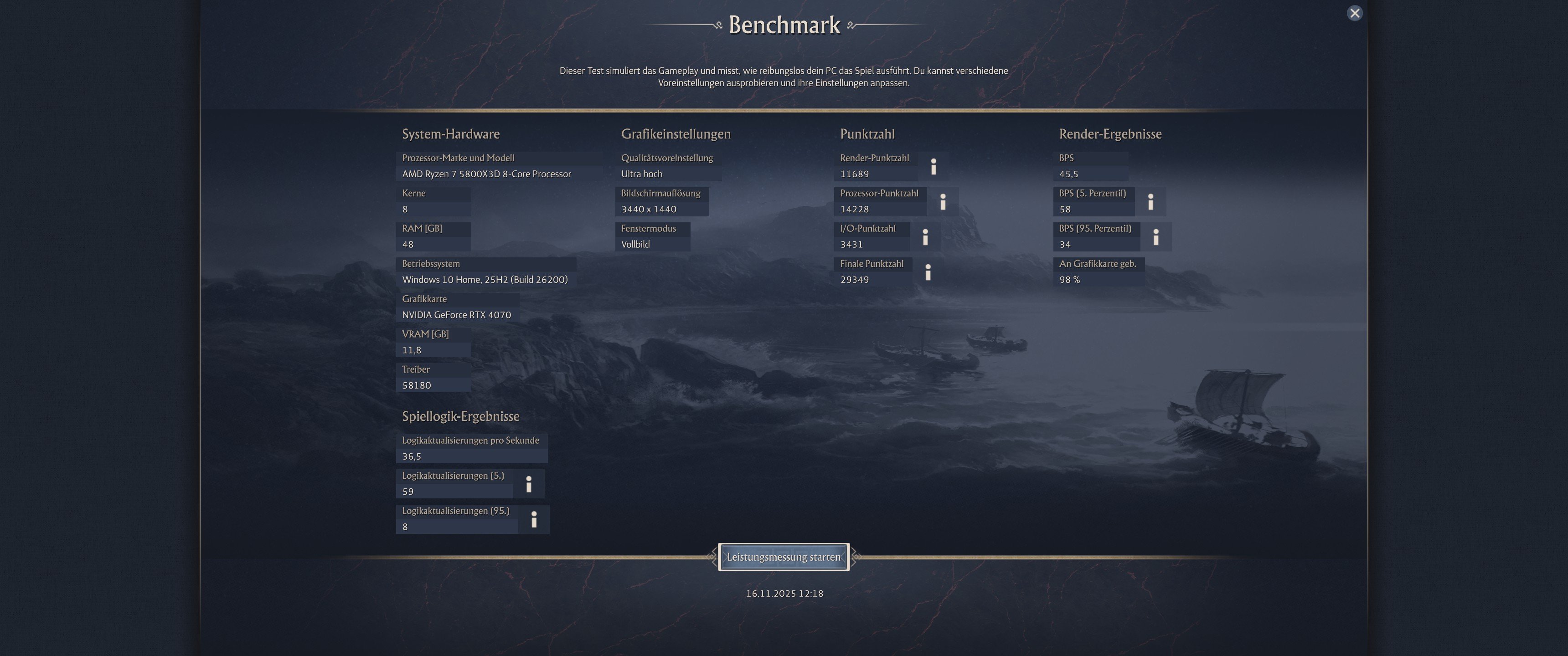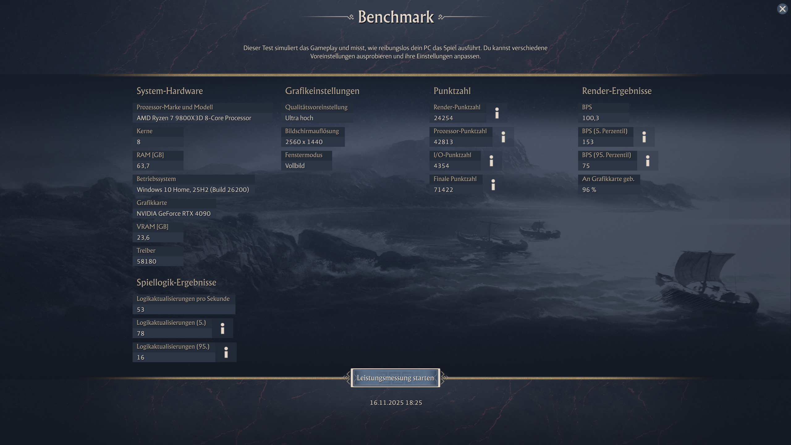 CachyOS läuft auf Kernel Version: 6.17.7-5-cachyos mit dem Open Treiber 580.105.08. Lustigerweise wird mein frisch installiertes Windows 11 als Windows 10 Pro, 25H2 erkannt und läuft mit Treiber Version 581.50. Nach dem ersten Benchmarklauf gab es direkt erst einmal einen Bluescreen mit Memory Fehler. Der trat dann auch noch drei mal auf direkt nach dem Neustart. 2h Memtest86+ ohne Befund und danach trat er auch nicht mehr auf.