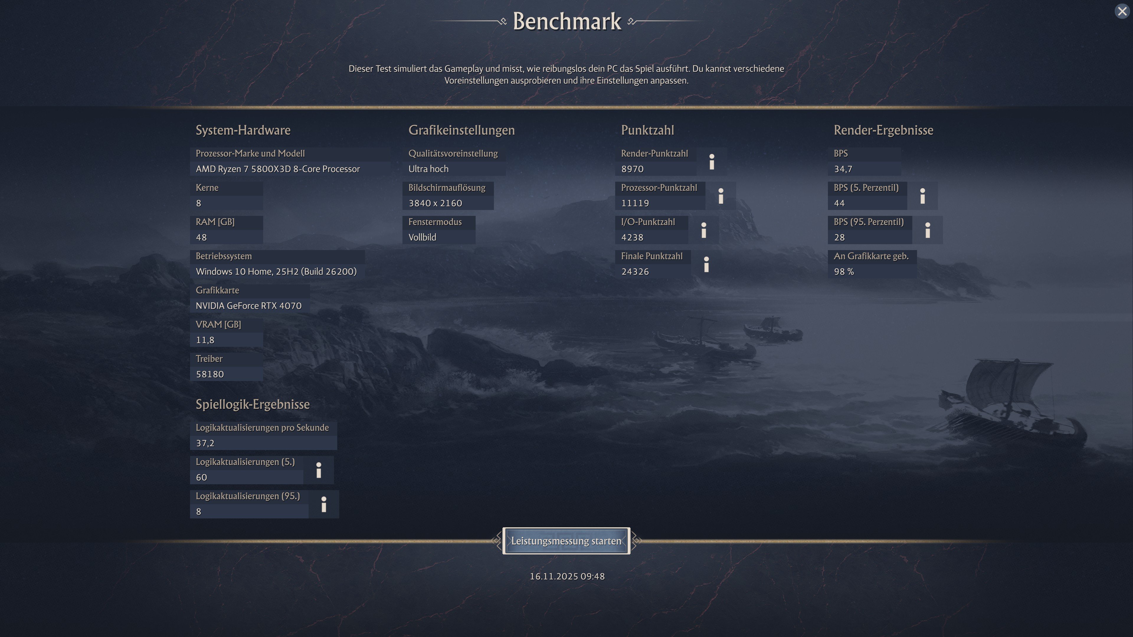 Wenn es nach dem internen Benchmark geht und ich sehe wie dieser bei mir in 3840x2160 läuft, läuft das Spiel alles andere als befriedigend. Ich habe mir gestern die Zeit genommen, diverse Einstellungen durchzugehen und diese über den internen Benchmark zu prüfen. Am Ende hatte ich die Einstellungen so niedrig wie nur möglich, selbst die Auflösung habe ich reduziert. Doch dieser interne Benchmark lief und läuft einfach nie durchgehend rund. Schon am Anfang, wenn die Kamera über die Berge schwenkt, fängt das Stocken an, was man deutlich in den Frametimes sieht. Die Abschnitte danach laufen teilweise besser, teilweise aber stocken diese genauso furchtbar. Ich weiß nicht, warum der interne Benchmark bei mir so schlecht läuft. Ich weiß auch nicht, ob ich damit alleine bin. Aber würde ich nur danach gehen, hätte ich das Spiel schon zurückgeben sollen. Wenn ich hingegen ein neues Spiel starte, läuft zumindest die erste Stunde noch alles rund. Doch wenn der interne Benchmark nicht irgendwelche Probleme hat, wird mein Speicherstand wohl vielleicht auch irgendwann anfangen so zu ruckeln und das ist dann nicht zu ertragen. Das darf mit potenter Hardware (RTX 4090, etc.) einfach nicht sein. Ich hoffe, Ubisoft schafft es, nachzubessern.