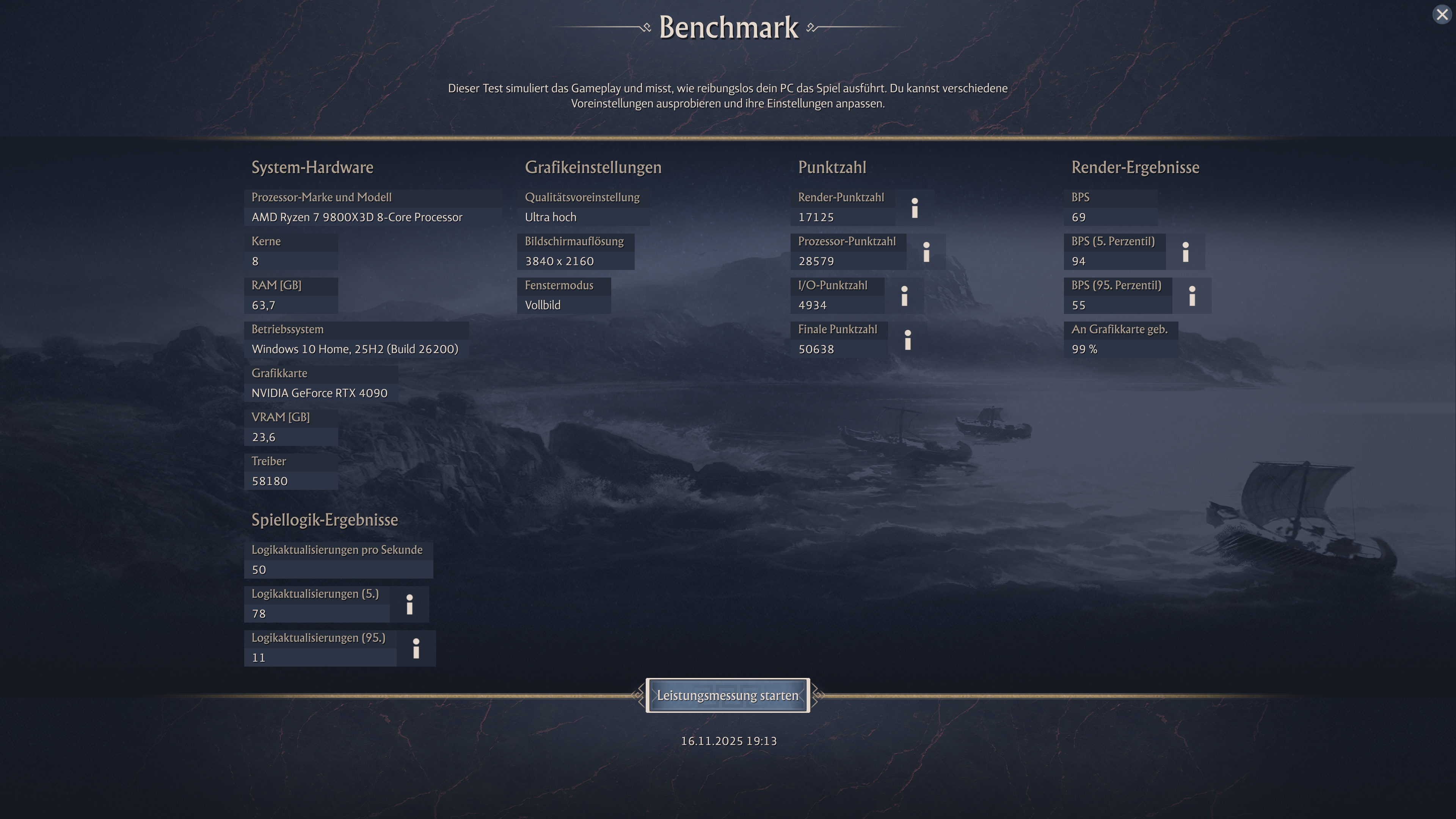 3.840 × 2.160, Preset „Ultra Hoch“, Quality-Upsampling – Render-Punkte: 16958