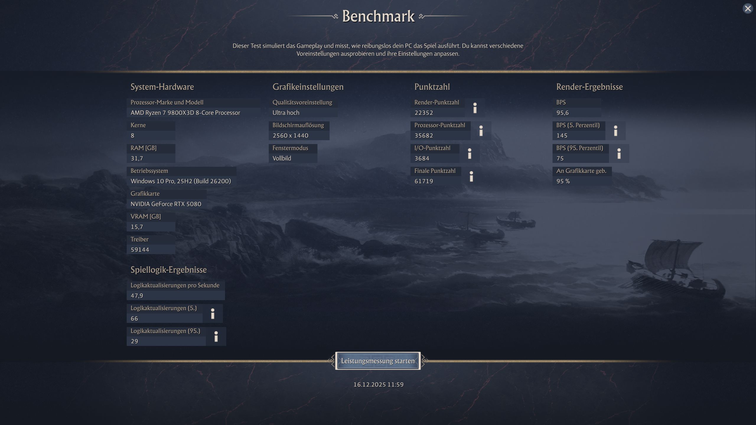 2.560 × 1.440, Preset „Ultra Hoch“, Quality-Upsampling – Render-Punkte: 19102