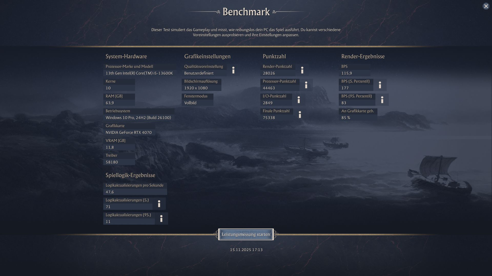 3.440 × 1.440, Preset „Ultra Hoch“, Quality-Upsampling – Render-Punkte: 17177