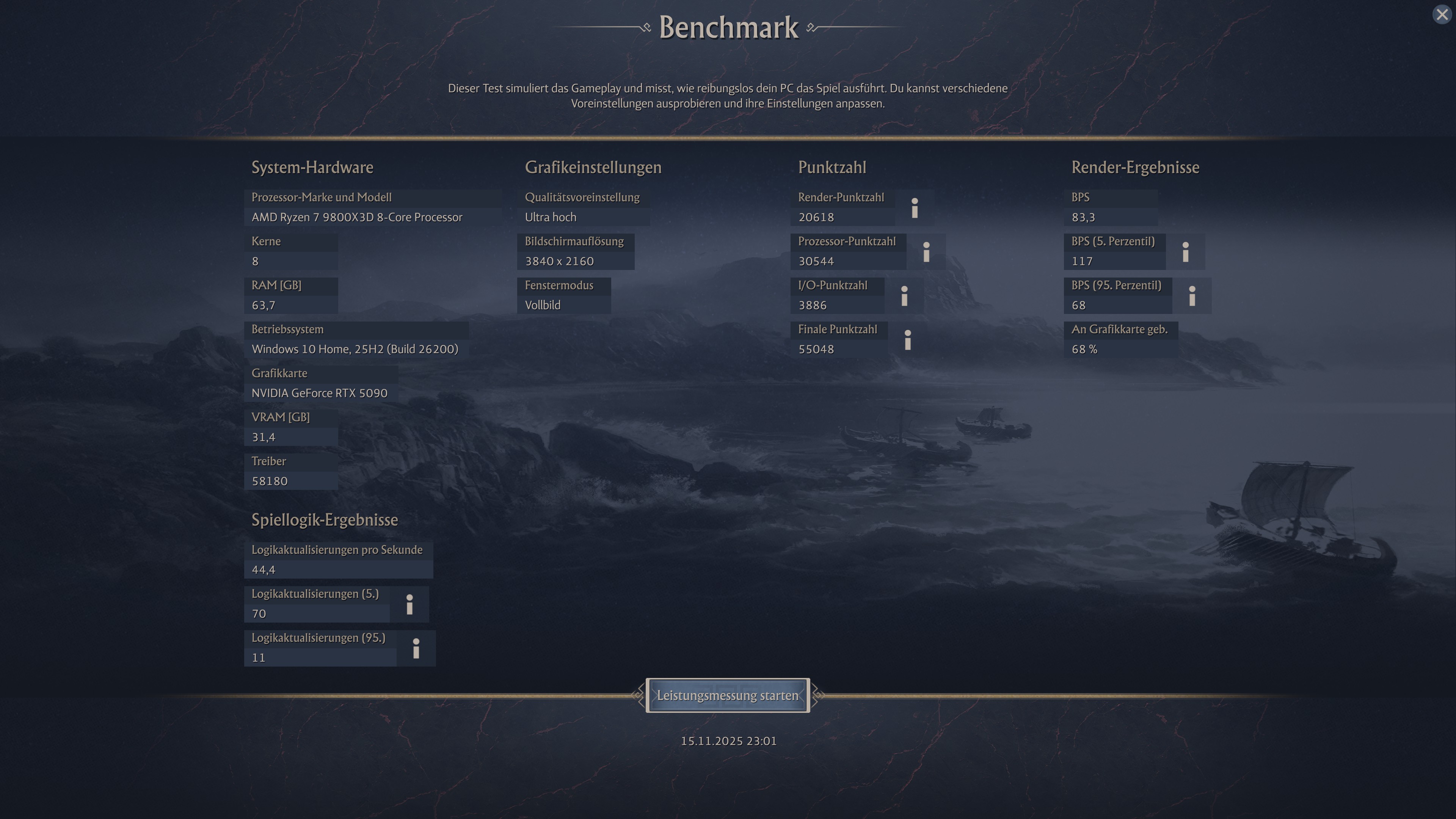 3.840 × 2.160, Preset „Ultra Hoch“, Quality-Upsampling – CPU-Punkte: 20263