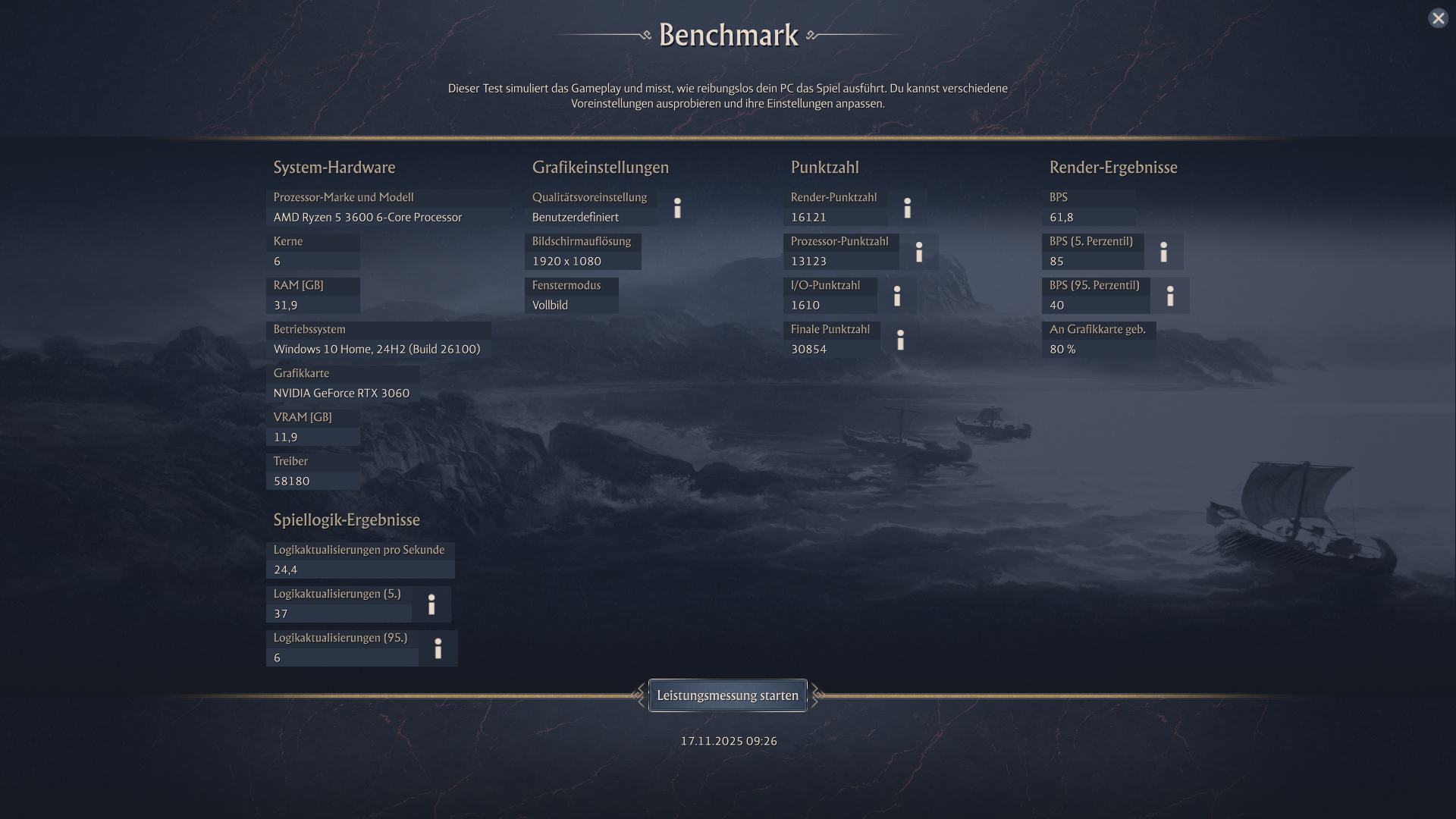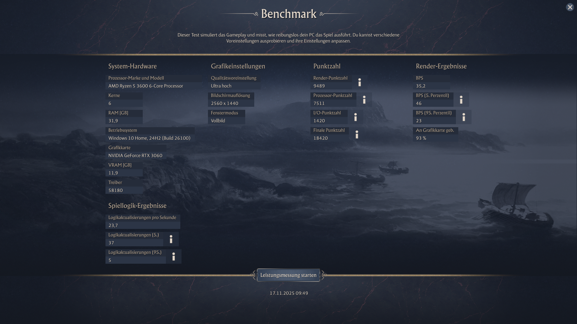 3.840 × 2.160, Preset „Ultra Hoch“, Quality-Upsampling – Render-Punkte: 13687