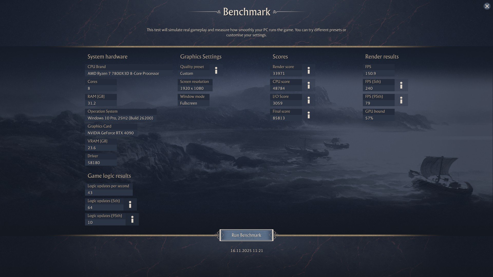System: RTX 5090 (QuietMode), 9950X3D (kein UV oder OC)