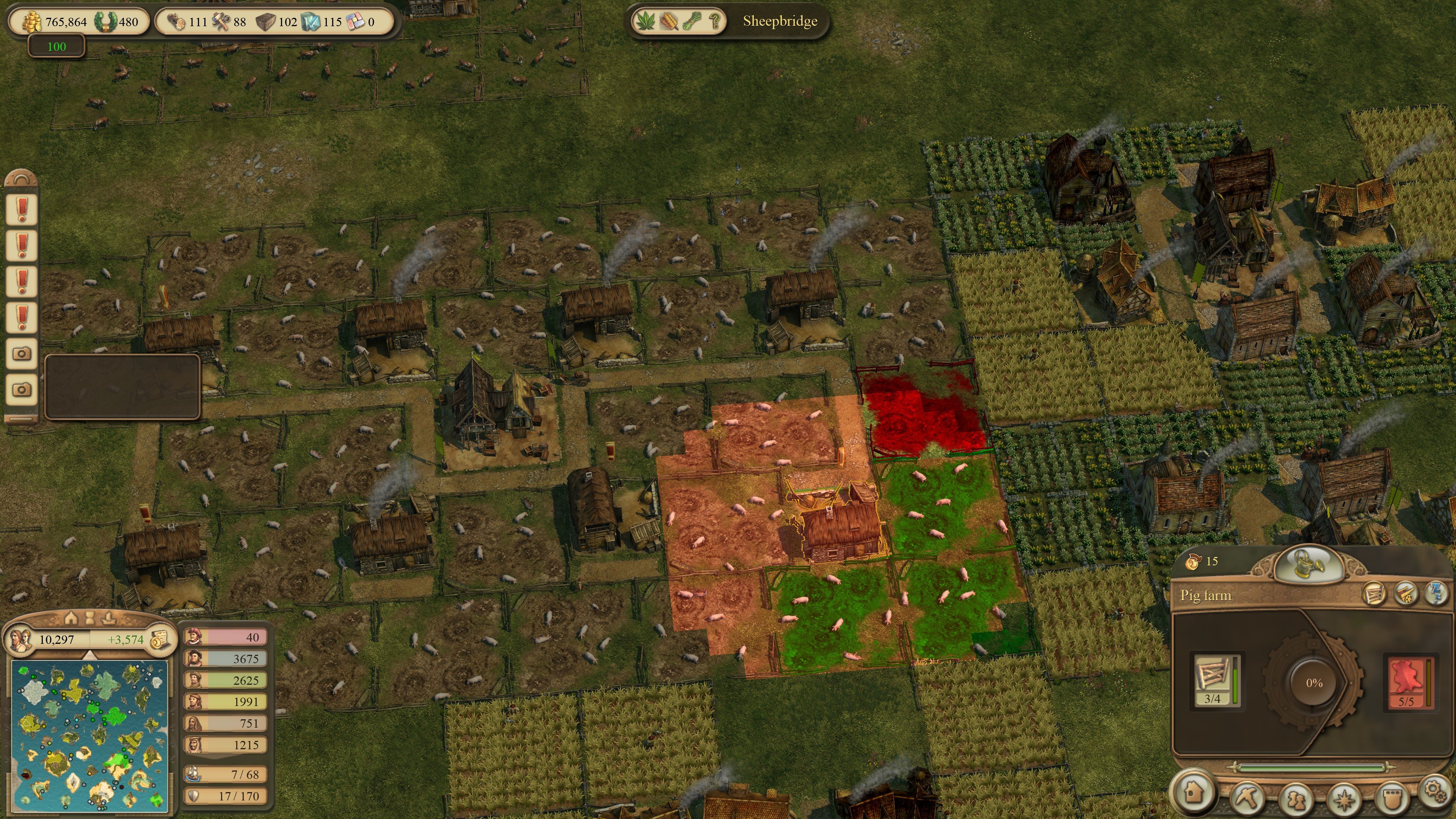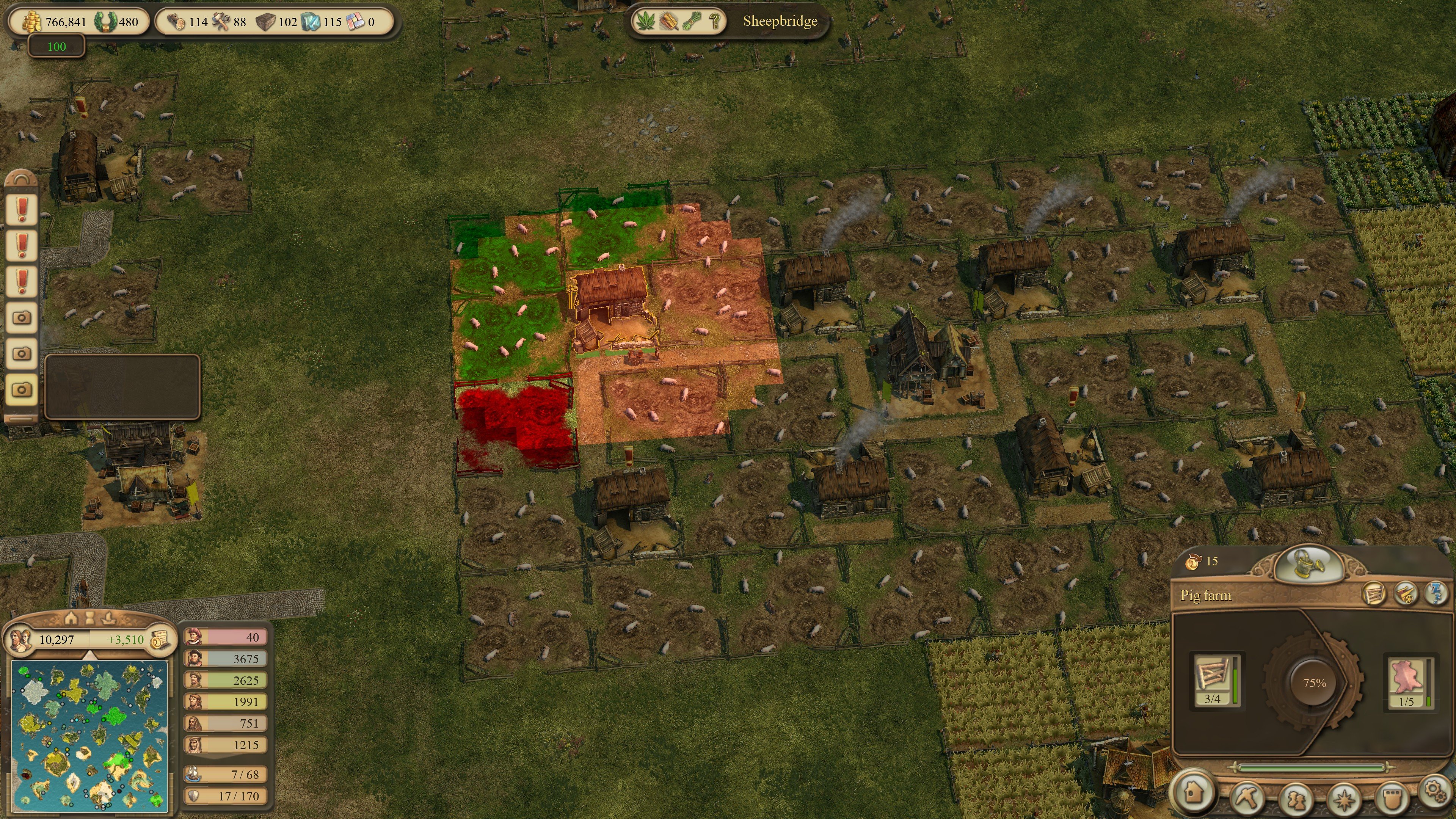 Gerate: Wenn das nicht geht liegen bei der roten Pasture zu viele Zellen außerhalb des Einzugsbereichs des zentralen Schweinefarmgebäudes... Was davon Bug ist oder nicht ist? Keine Ahnung. 🤷♂️