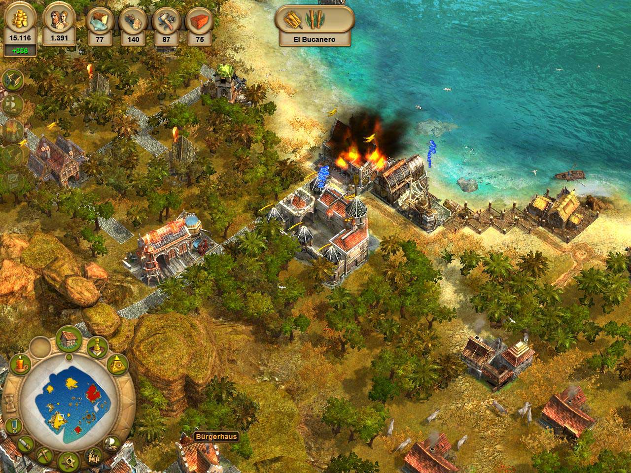 ich spiele gerade nochmal das Grundspiel und bin dort mittlerweile im letzten Szenario angelangt. Nun kamen die Kriegsschiffe vom Schallert und habe auf mein Kontor geknallt. Glücklicherweise konnte ich fix meine schiffe zur Verteidigung heranziehen, sodass das Kontor noch stand. Normalerweise reparieren sich die Gebäude selbst und auch ein Brand sollte abklingen, doch mein Kontor brennt und brennt! Auch das Errichten einer Feuerwache brachte nix. Hier mal ein Screenshot
