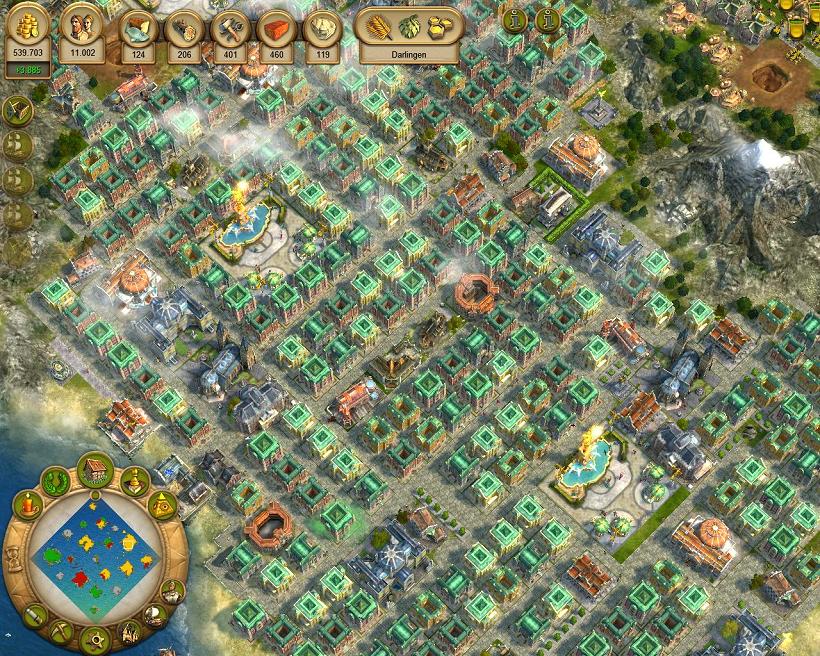 anbei meine kleine Stadt, jeder Fleck auf der Insel ist bebaut :-/ Muss mich wohl von nem Computergegner verabschieden um noch ne Insel besiedeln zu können