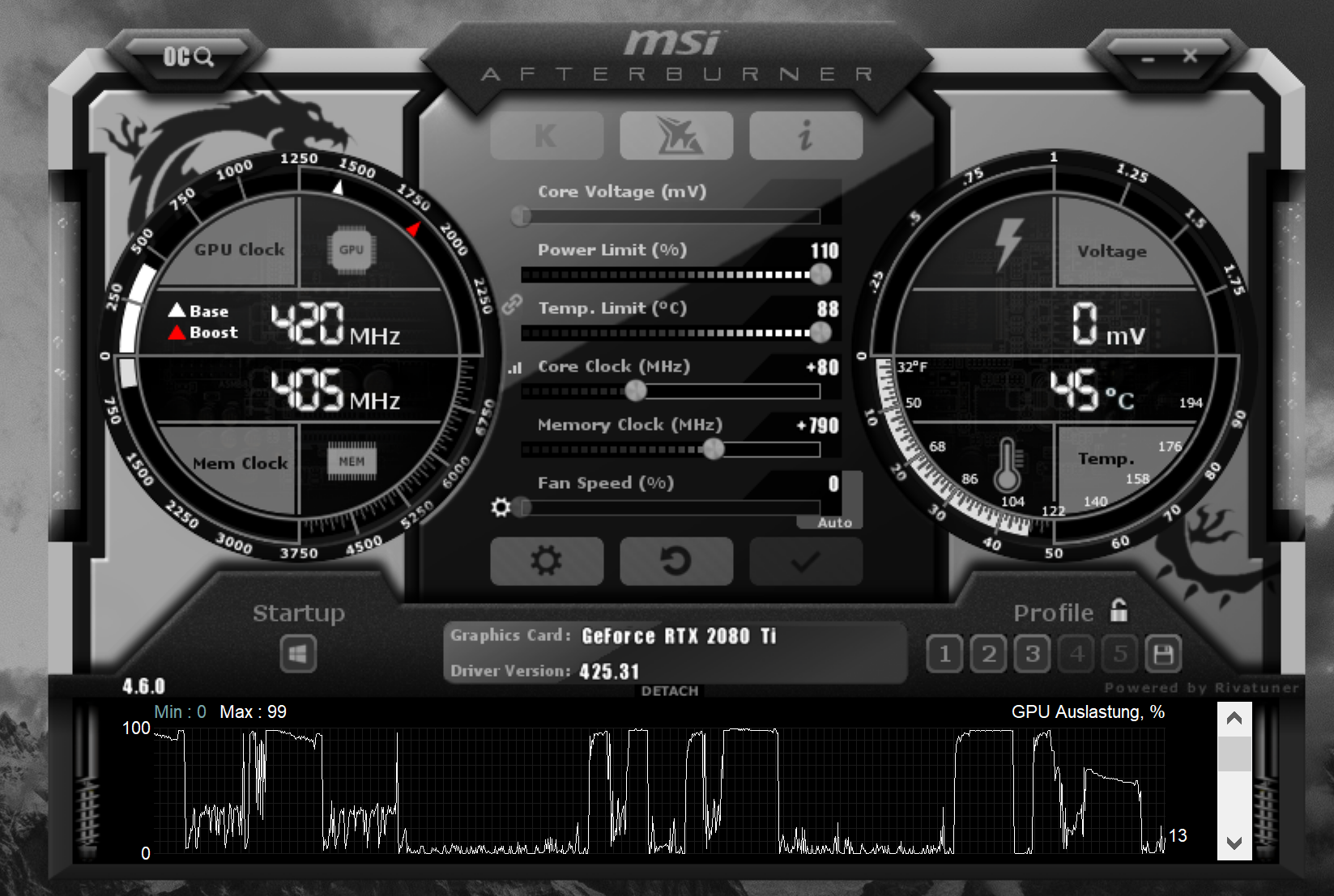 MSI GeForce RTX 2070 Armor 8G OC läuft auf Werkseinstellungen
