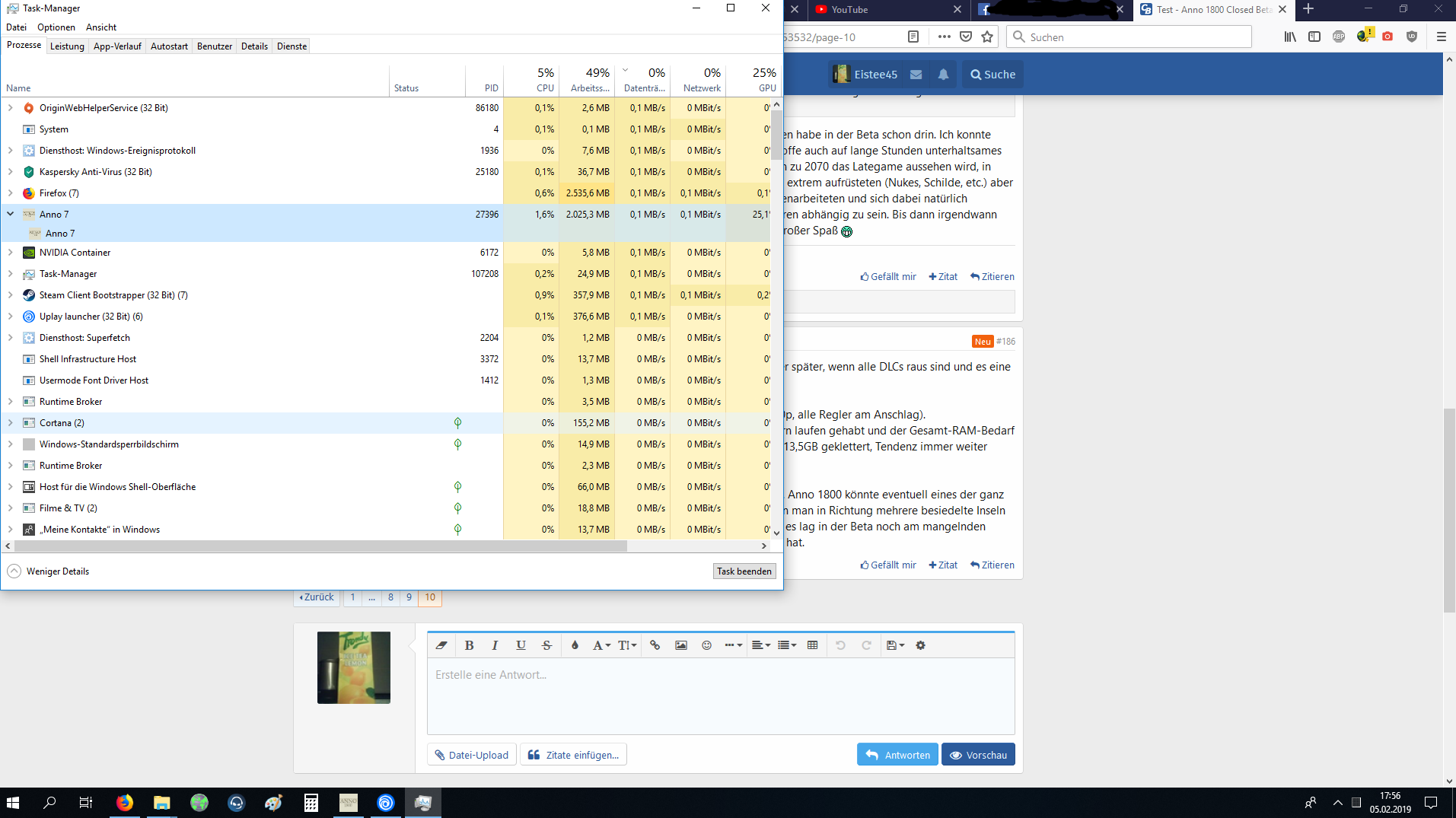 Bezüglich des RAM´s habe ich etwas von Auslagerungsdatei gelesen, das man die im Windows anders einstellen kann, wodurch das Spiel dann besser laufen soll. Aber kp ob das stimmt. Mein Anno hatte 5,5GB im Taskmanager und im ResourcenManager war es bei 10-11, vllt auch 12 GB RAM