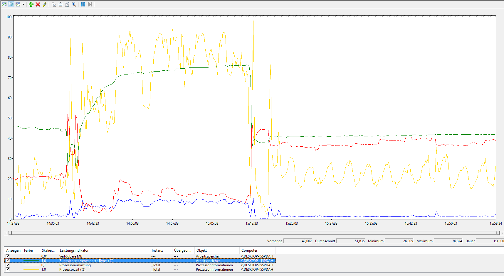 jetzt habe ich nochmal die Leistungsüberwachung von windows mitlaufen lassen (Anhang 2), zwischen 14:40 und 15:12 läuft das Spiel.
