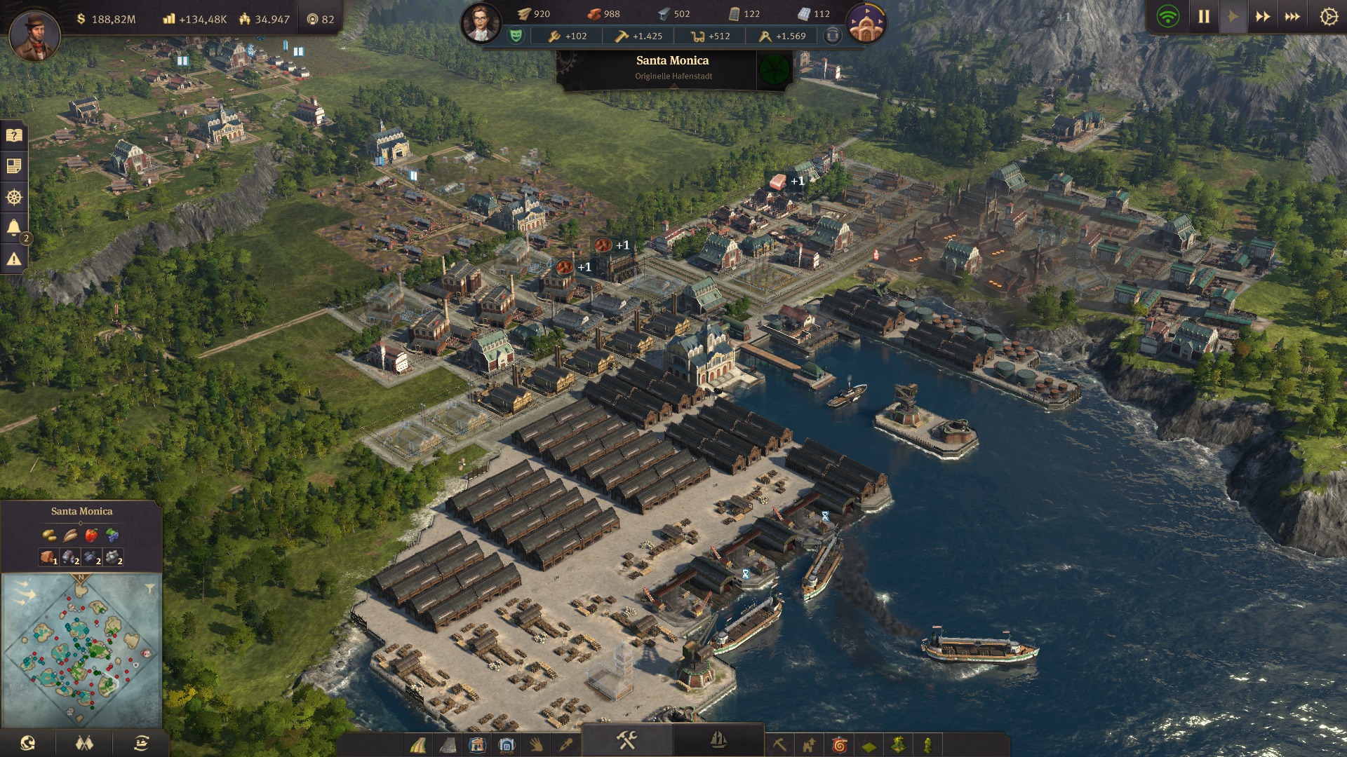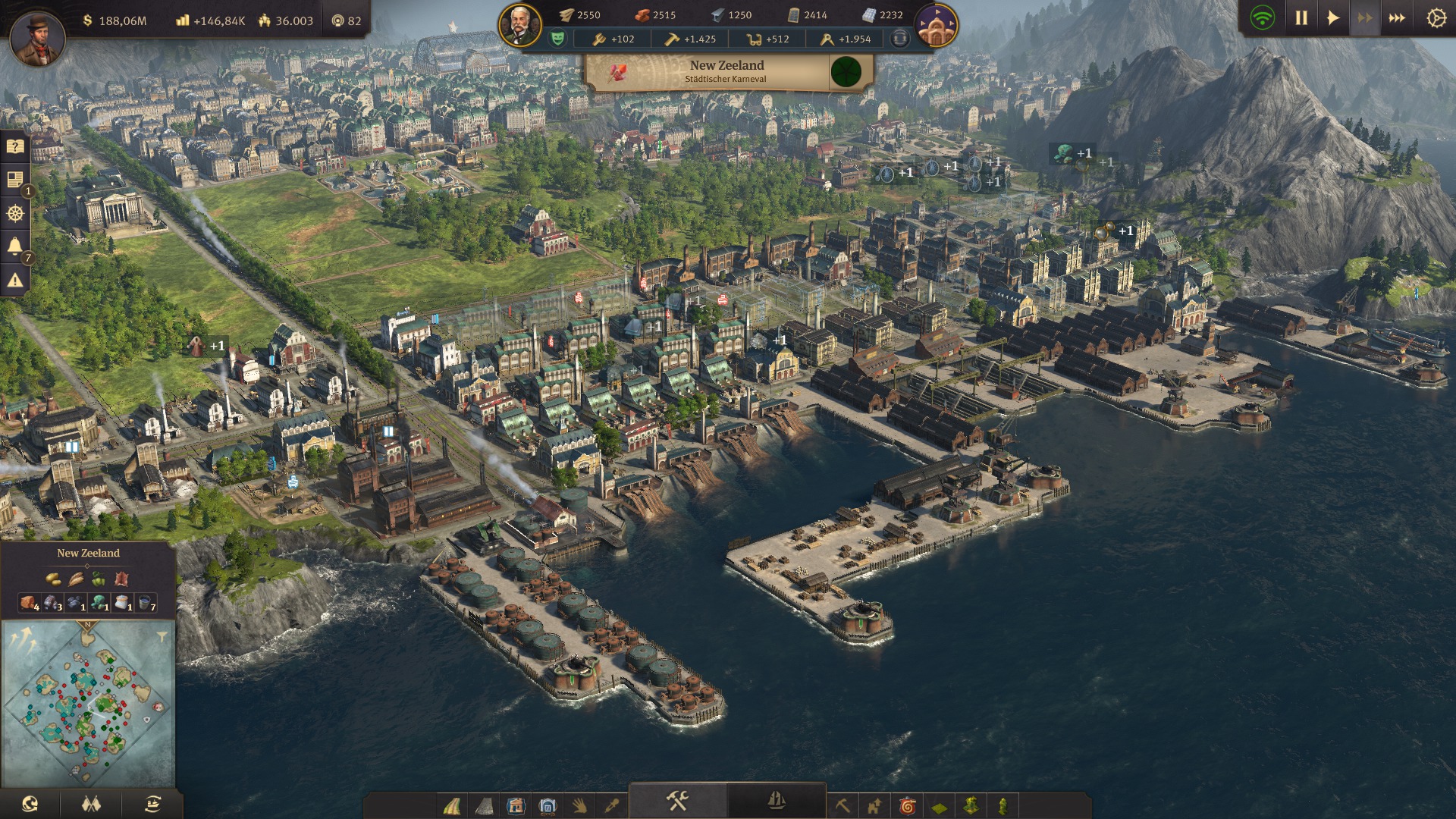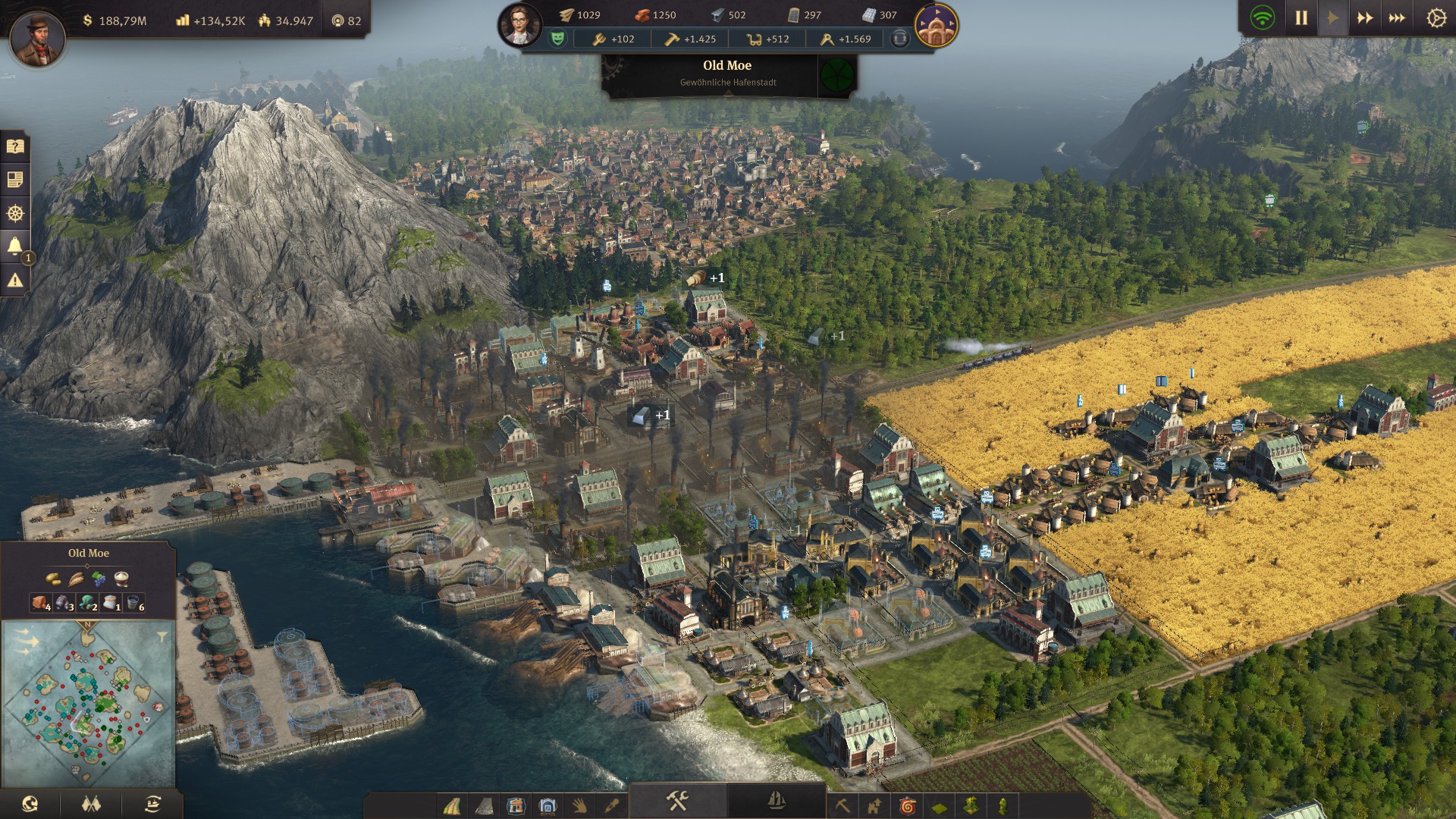 - 1 große Insel voll mit Industrie/Logistik und Bauern+Arbeiter