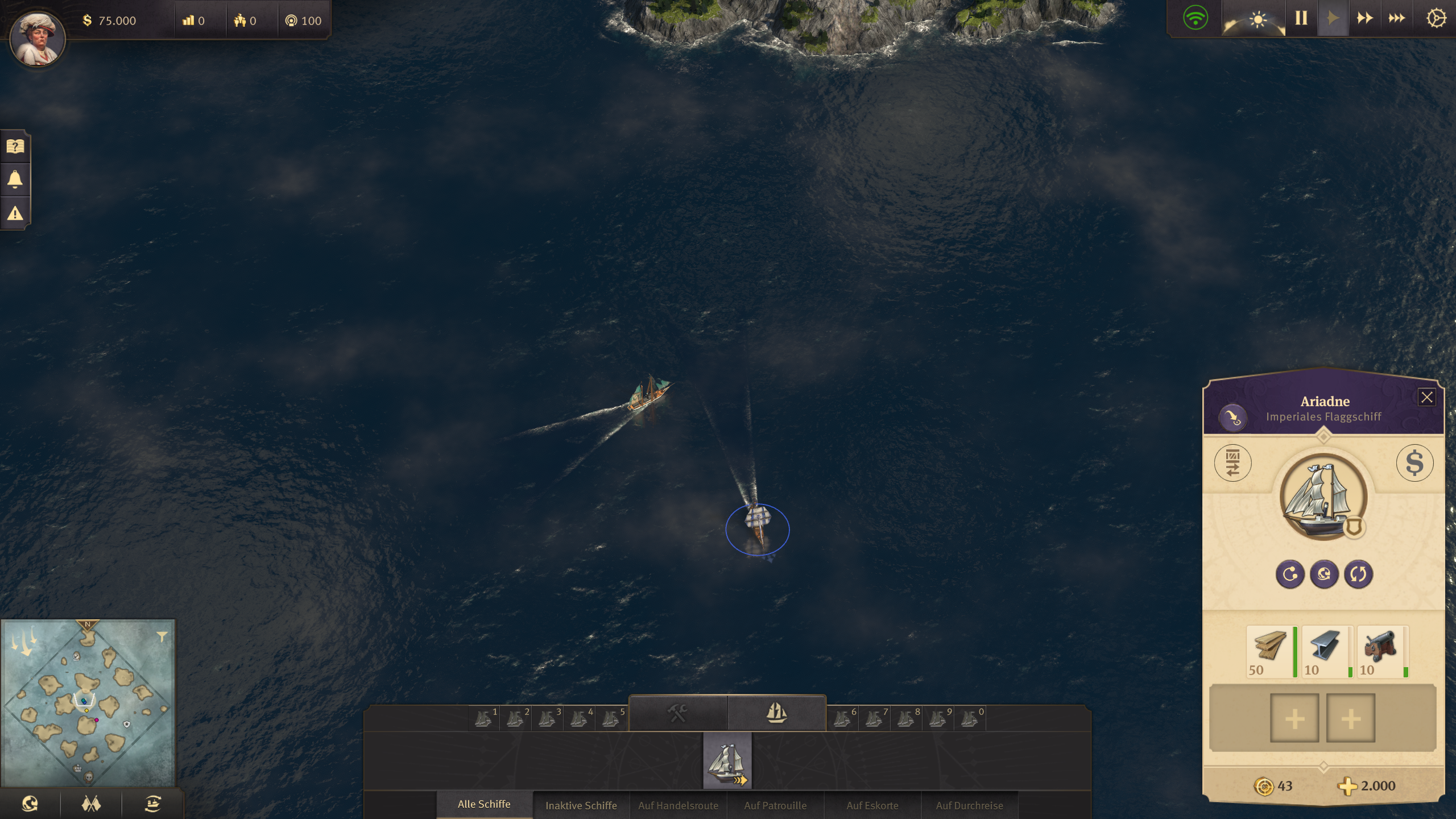 Kurzer klick auf pausieren und starten bei der Handelroute und das Schiff fährt zurück zum anderen Hafen und es geht weiter.