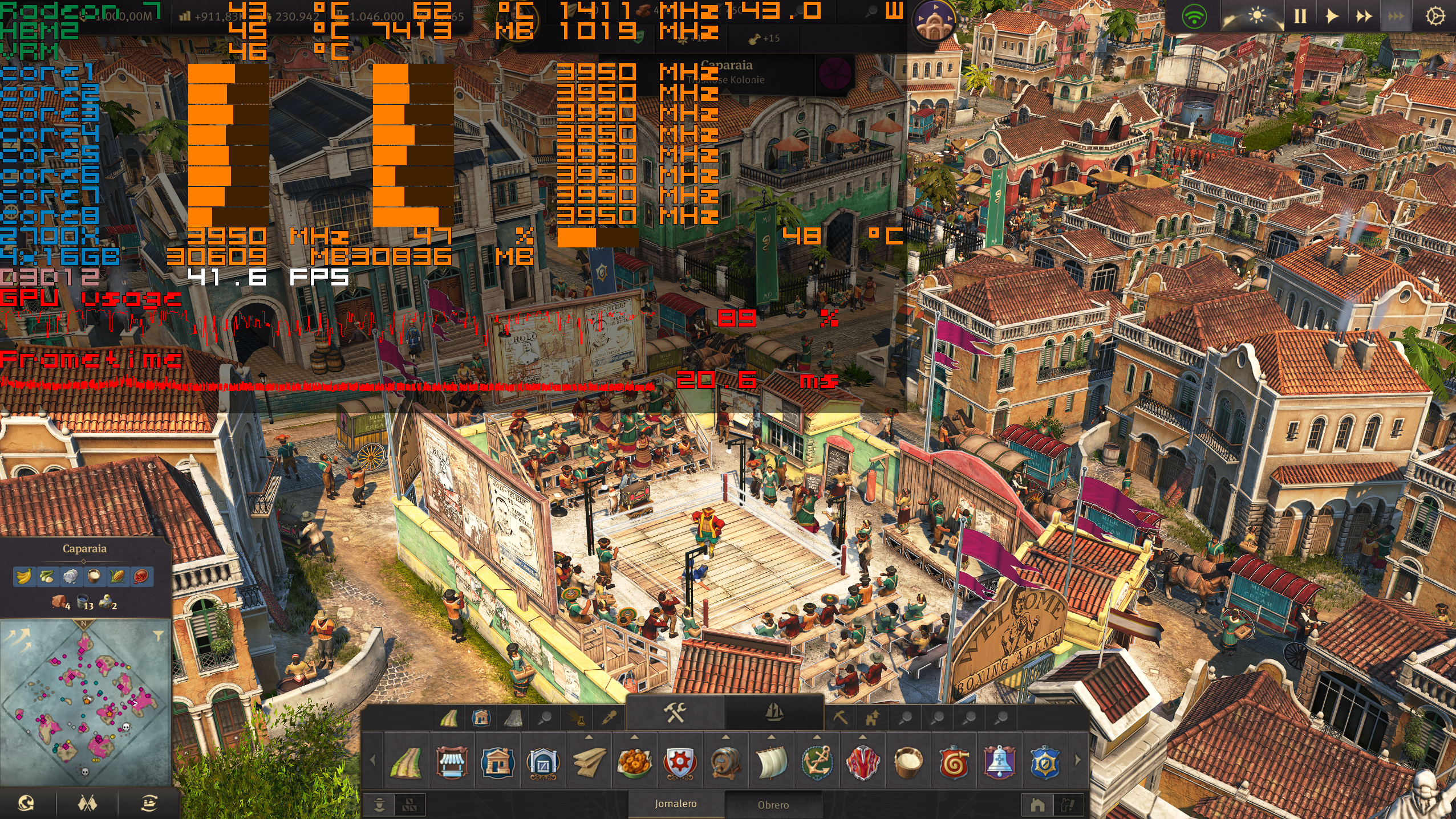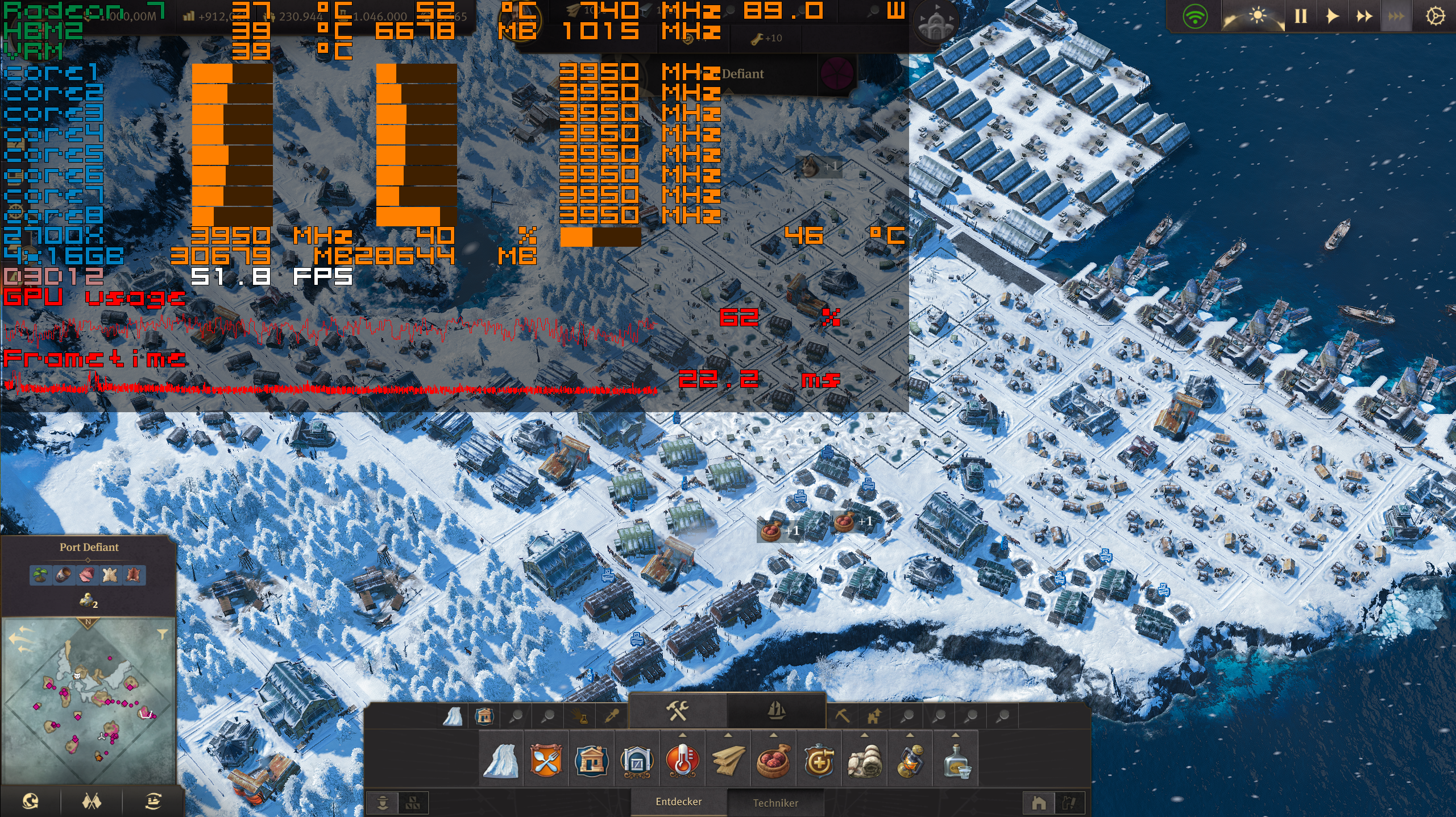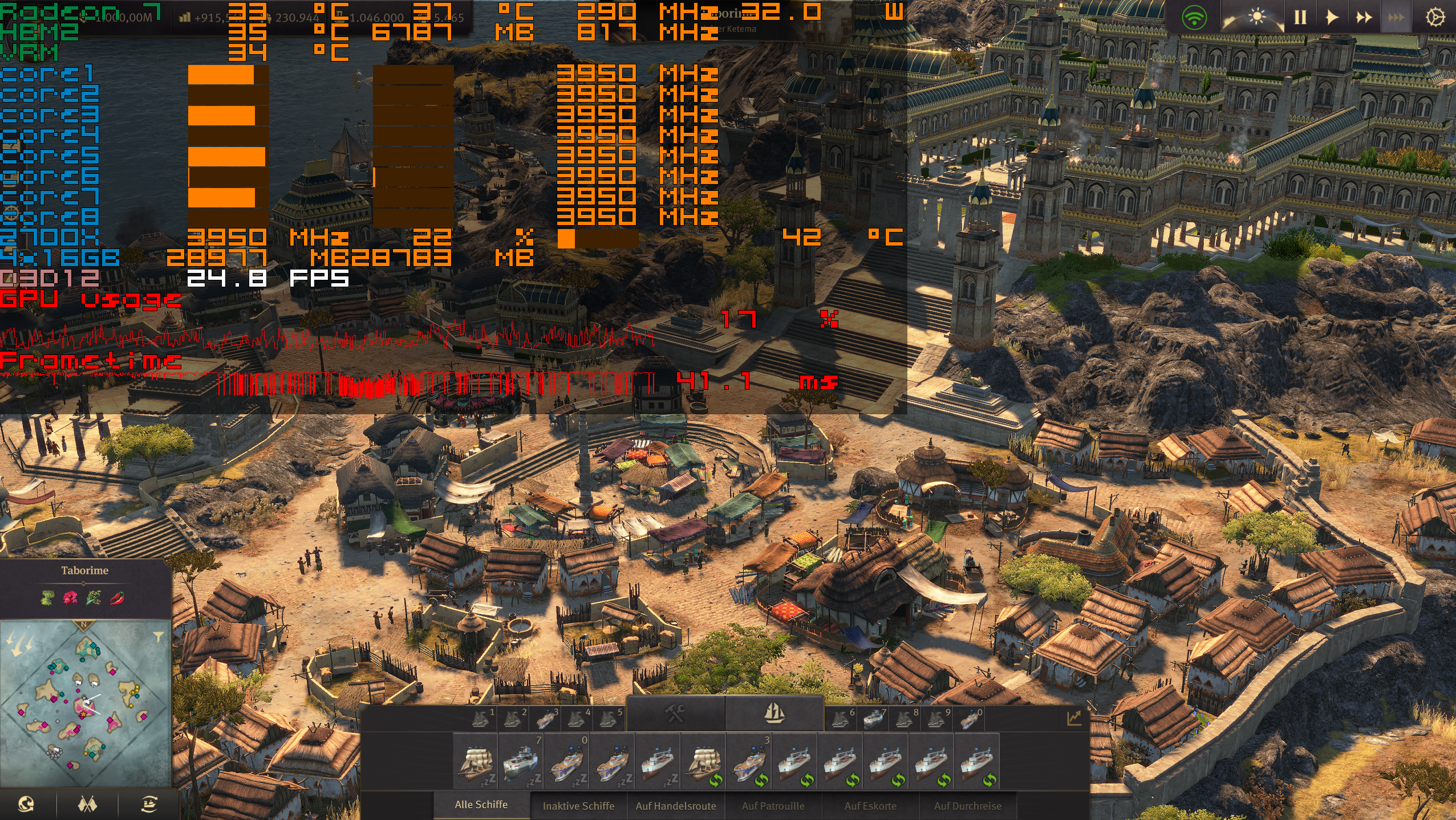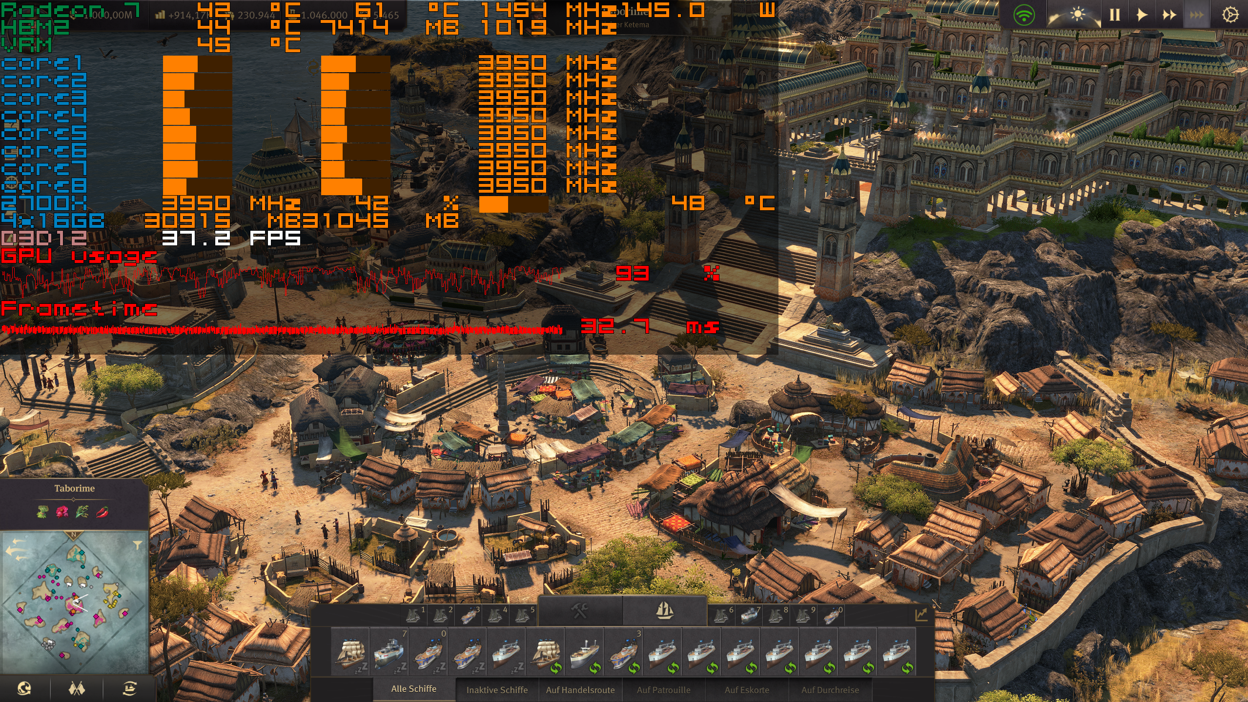 ich würde es als eingeschränkt spielbar bezeichnen....träge...häufiges Ruckeln...aber wenn man bedenkt, dass es hier eine lategame Szene ist, auf meiner größten Insel, dann kann man sich wohl damit arrangieren.