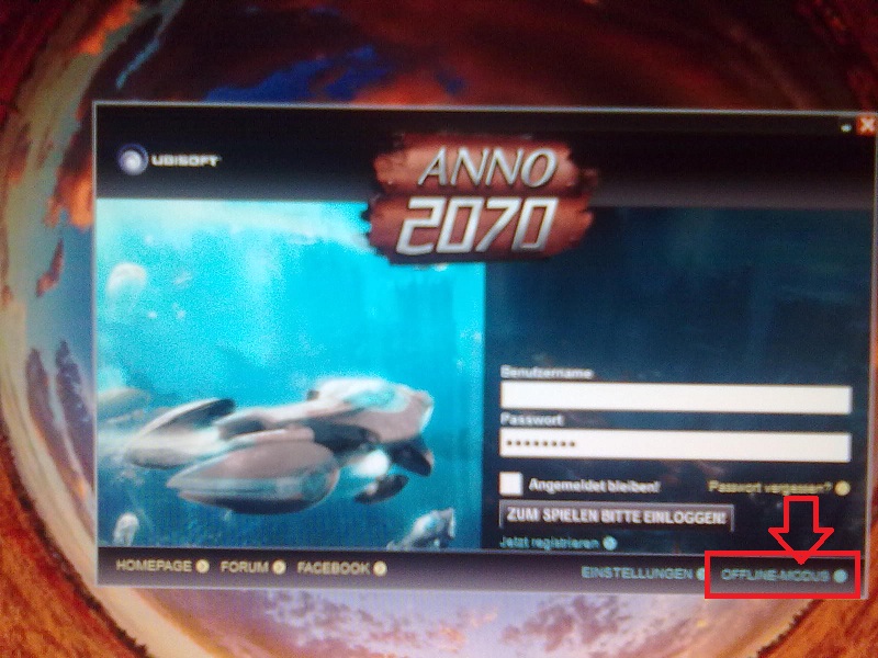 Wer OFFLINE spielen will, gibt im 1. Loginscreen keine Daten ein und klickt rechts unten auf OFFLINE MODUS.