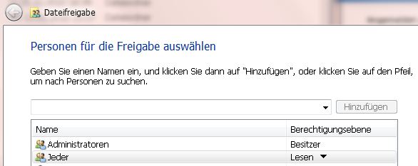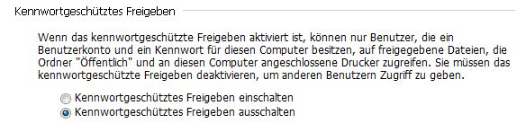 Unter XP hat das gereicht, damit der Gast account ohne Passwort auf eine share zugreifen kann. Windows 7 sperrt sich dagegen. Es ist allerdings wichtig, dass der Zugriff komplett anonym von jedem Computer ohne Anmeldung funktioniert.