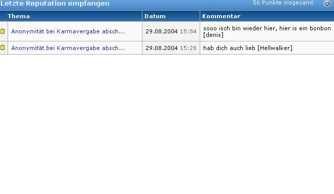 Ich bin dafür, daß die Karmavergabe, vor allem jetzt nach den Änderungen des Systems, nicht mehr anonym abläuft.