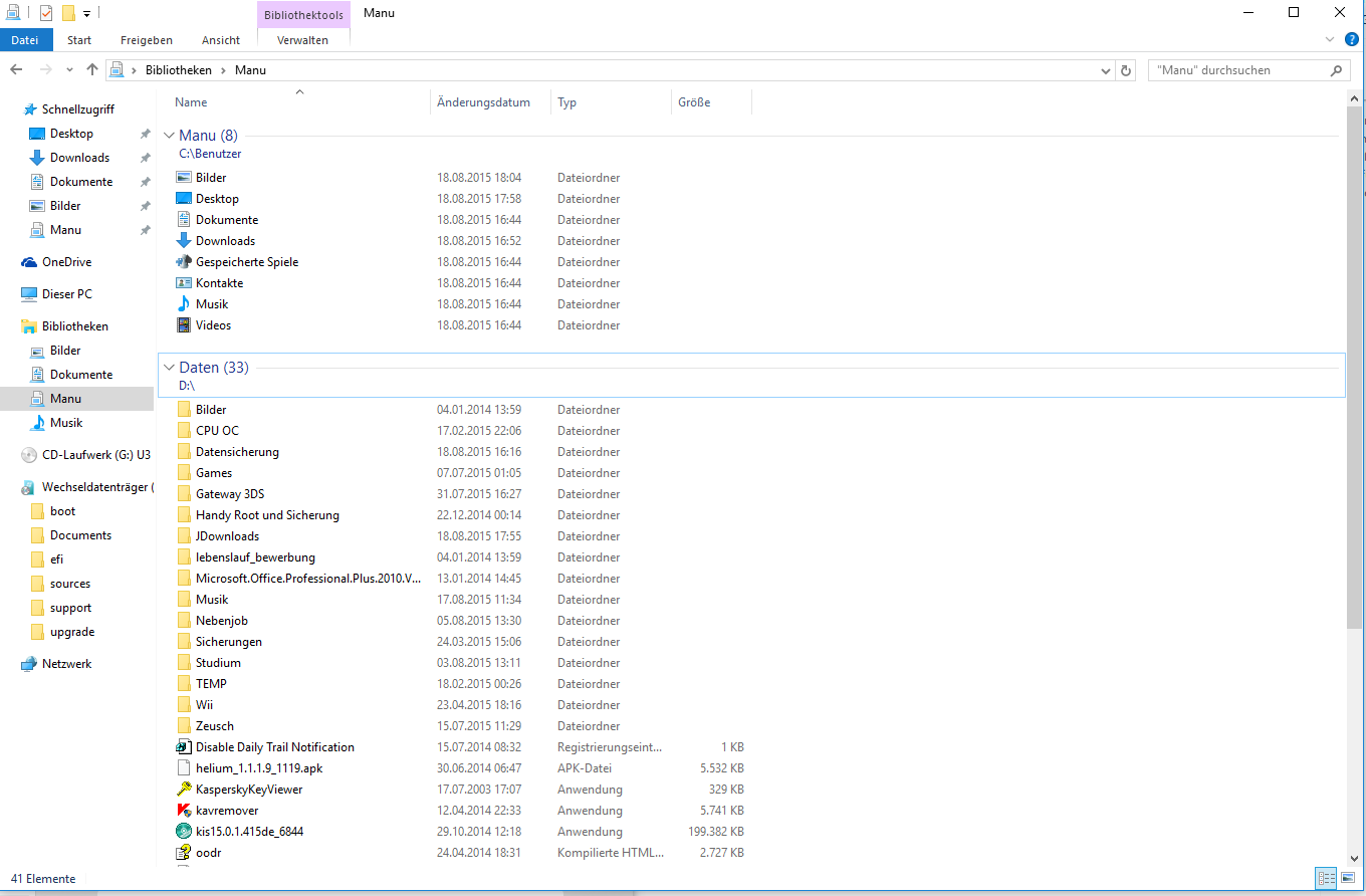 Seit Win 7 bin ich persönlich ein großer Fan der Bibliotheken. Bei Win7 war es noch so,