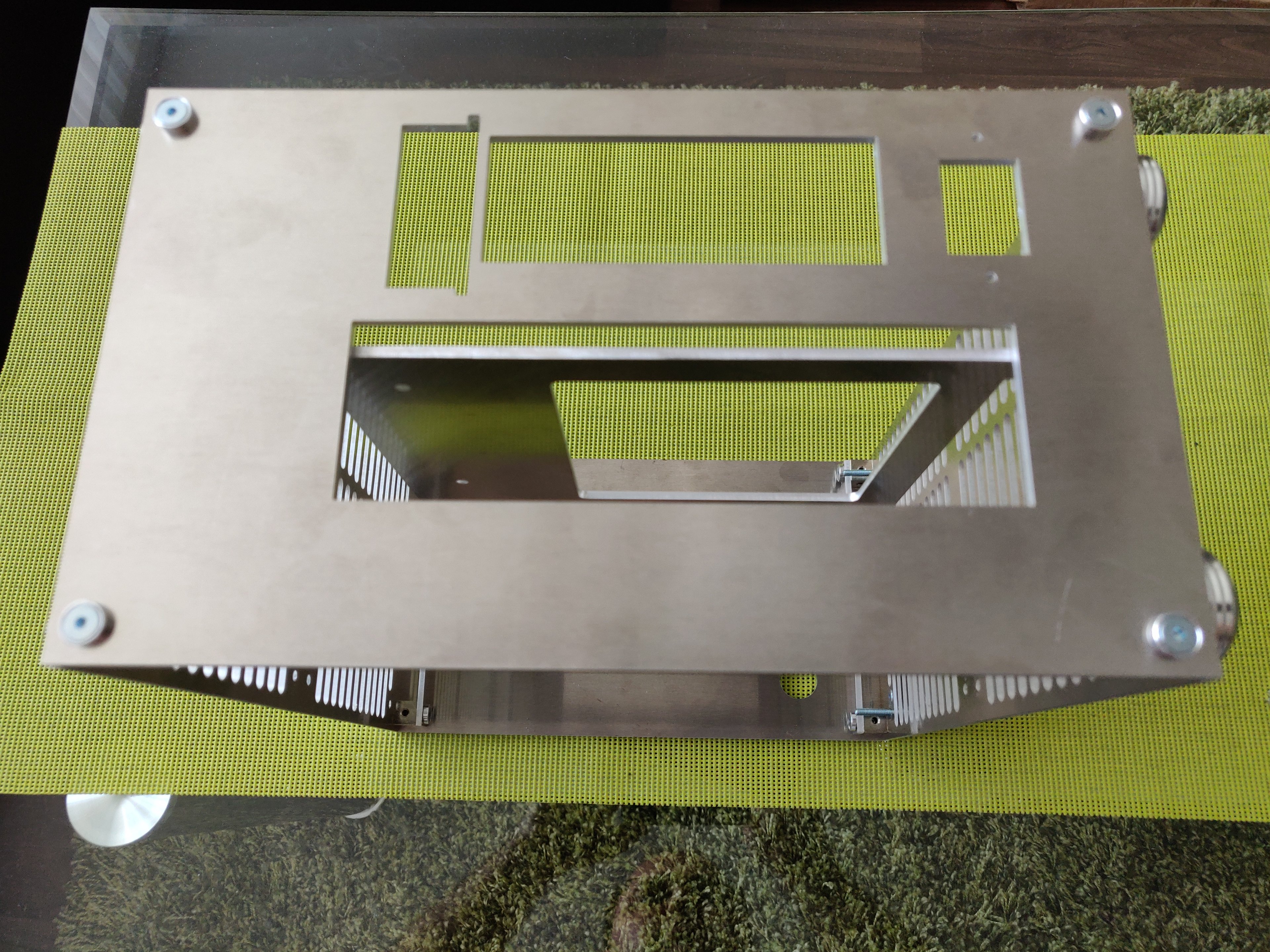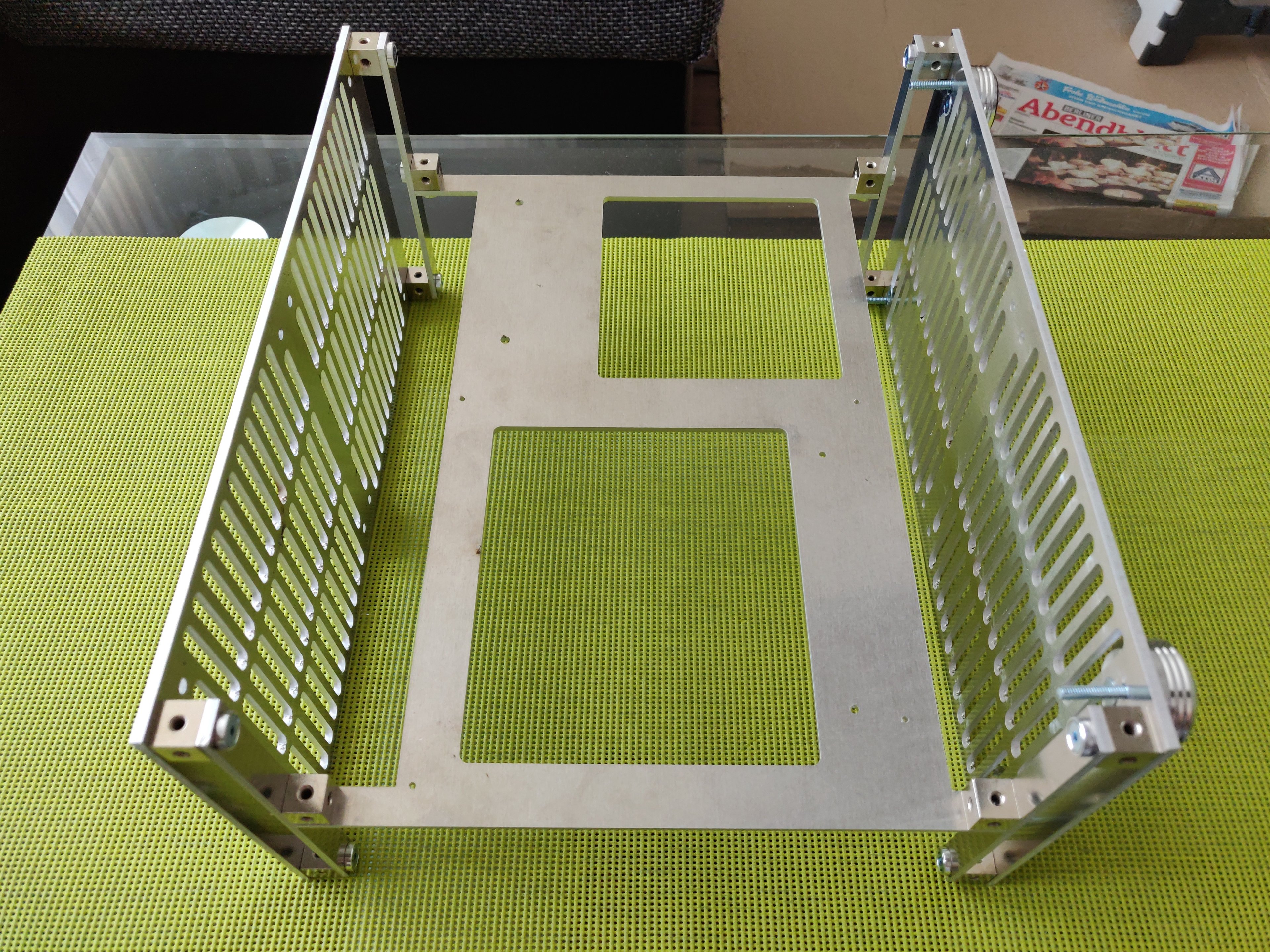 2mm Plexi-Scheibe mit 2mm Alu Flachstangen dahinter.