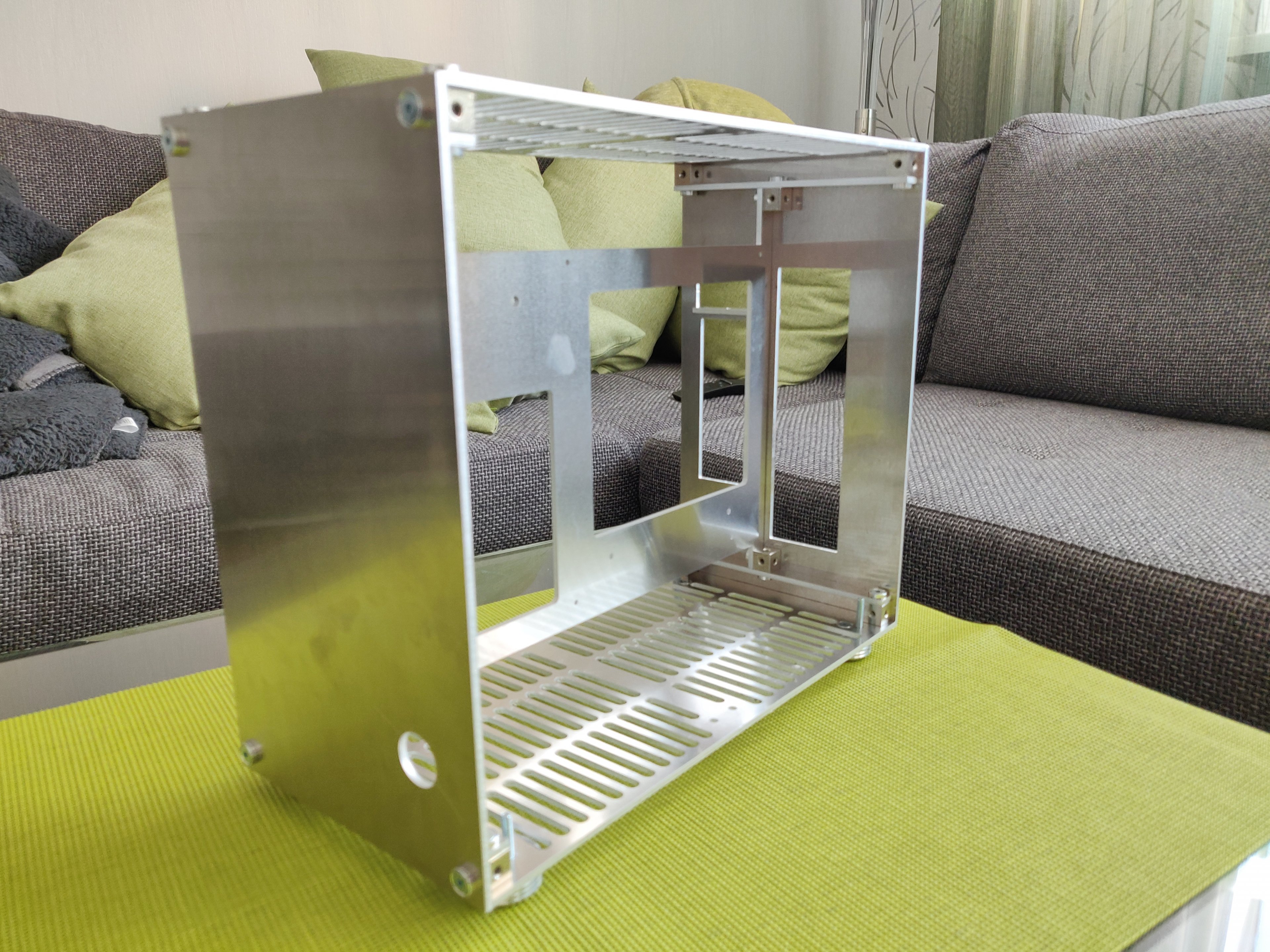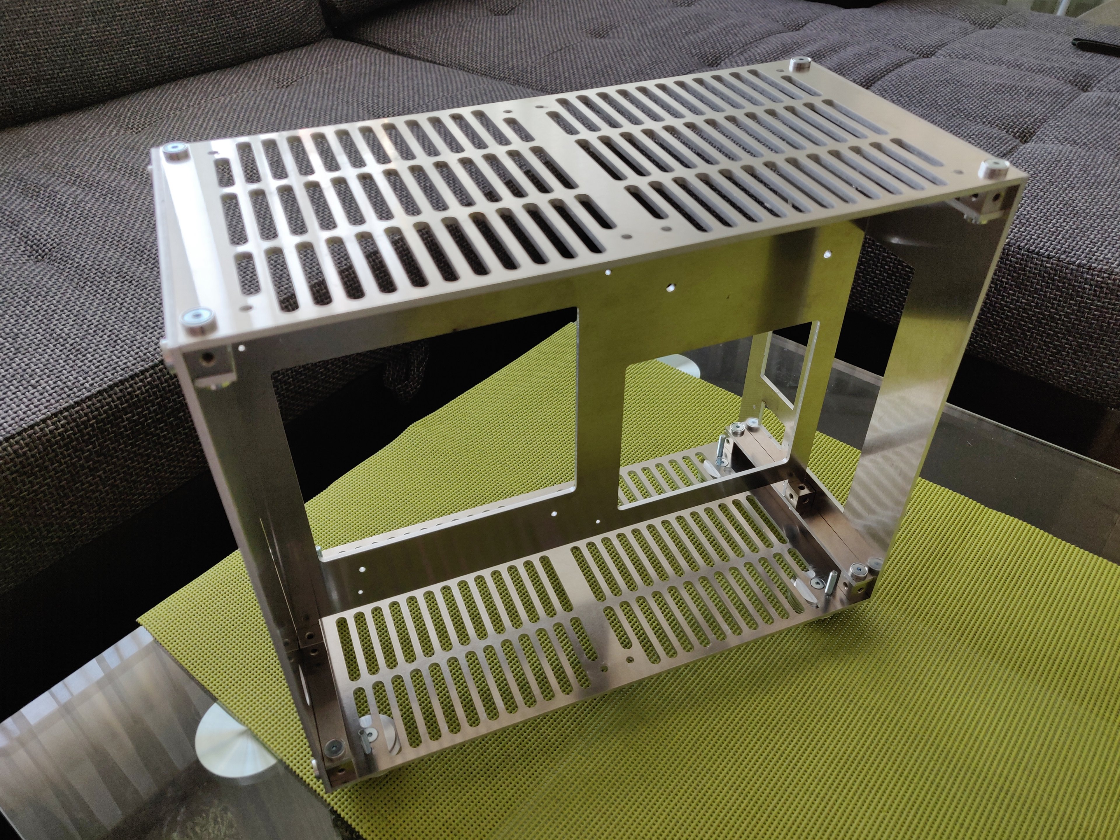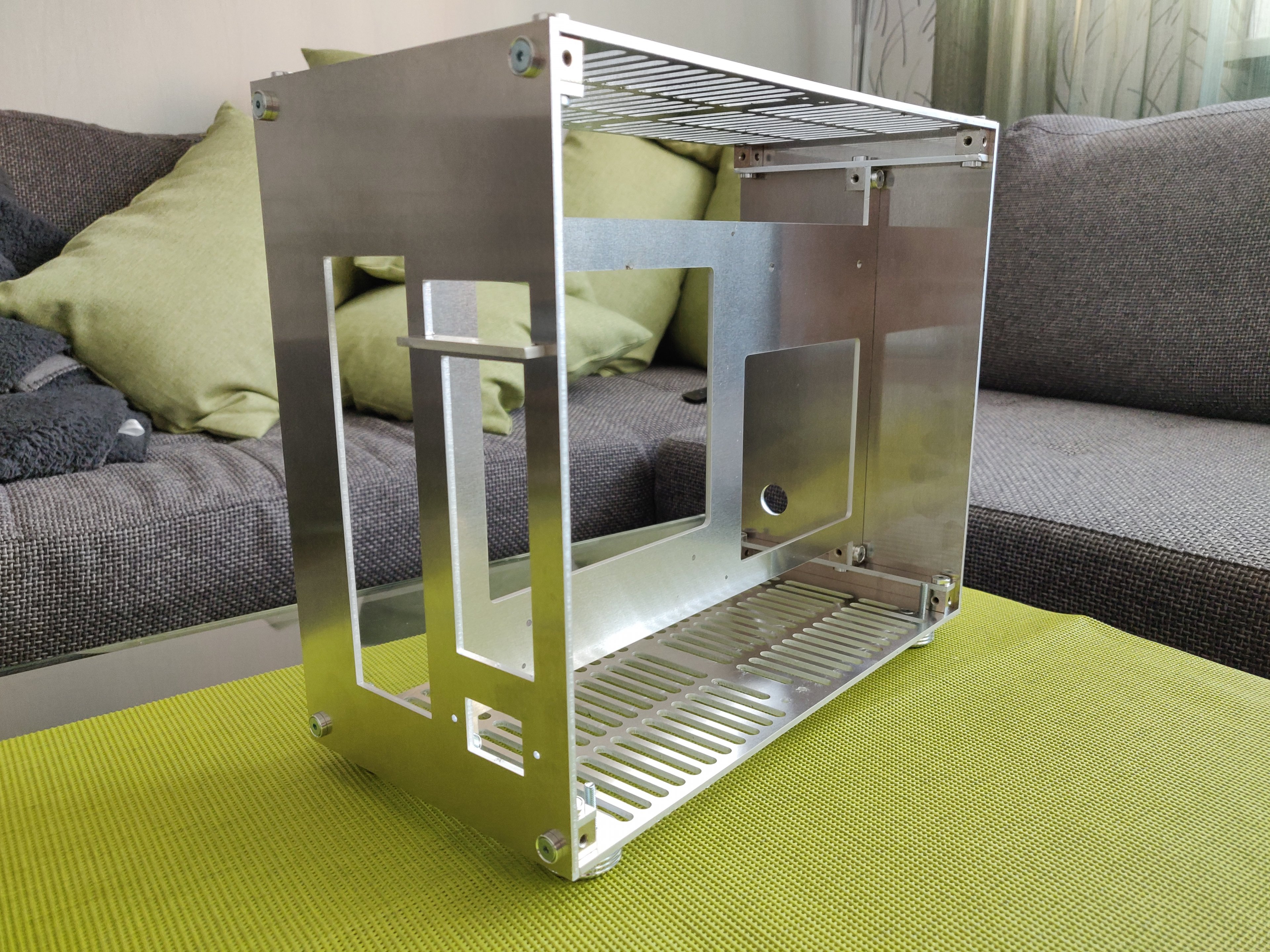 Ziel war ein Gehäuse für Micro-ITX Hardware mit 4x 140mm Lüftern mit folgenden Chassis Dimensionen 150x255x310(BxHxT) ohne überstand (Füße, Schrauben...) zu Bauen.