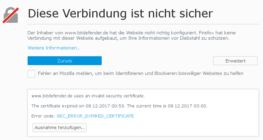 Eigentlich wollte ich als weiteren noch den Bitdefender verlinken, das mache ich jetzt aber mal nicht, es könnte bei dem ein oder anderen zu Irritationen führen, denn dort ist seitenübergreifend das Sicherheitszertifikat abgelaufen:
