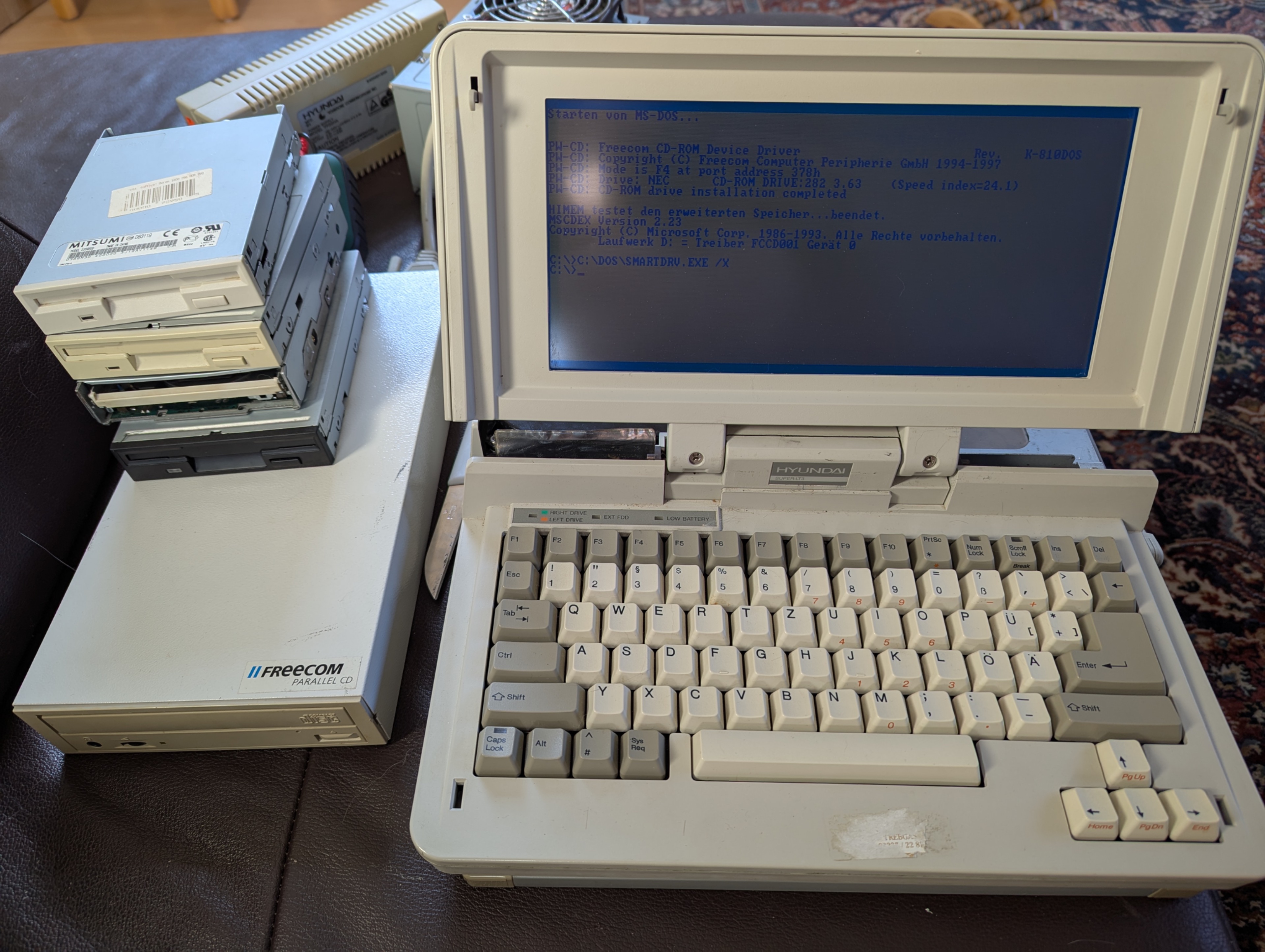 ich habe einen alten Hyundai Super-LT3 Laptop (seit über 20 Jahren in meinem Besitz ) mit DOS, und die Verbindung zum Diskettenlaufwerk funktioniert einwandfrei. Leider ist das Original-Laufwerk (ein Epson SMD-400) defekt, und ich habe mir ein gebrauchtes Ersatzlaufwerk besorgt.