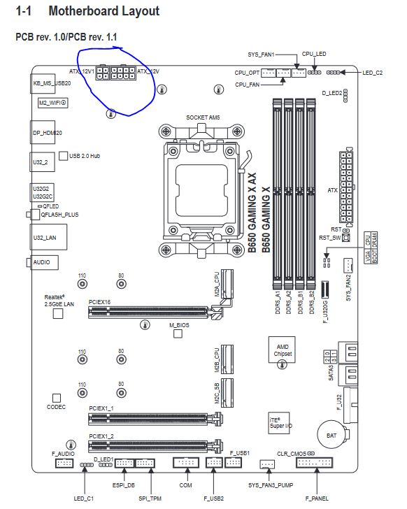 Ich habe bei dem o.a. Mainboard einen Anschluss für die CPU (im Screenshot markiert). An den ATX_12V schließe ich den entsprechenden CPU-Stecker vom Netzteil auf dem Mainboard an. Der 4-Pin Stecker daneben (bezeichnet mit ATX_12V1) bleibt dann leer, den würde ich nur benötigen, wenn ich übertakte, richtig?