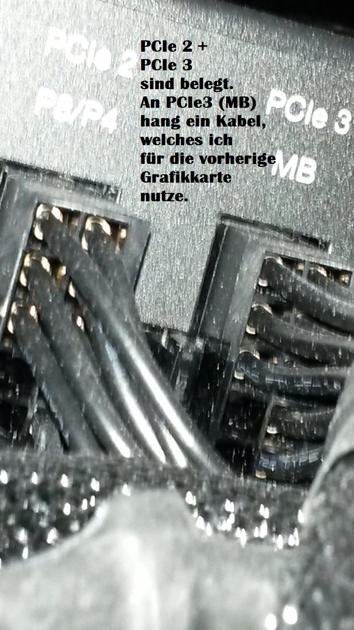 Und dann dieses Y-Kabel zusammen mit dem nun freien 8-pin Kabel vom << PCIe 3 | MB >> auf die Grafikkarte anstecke?