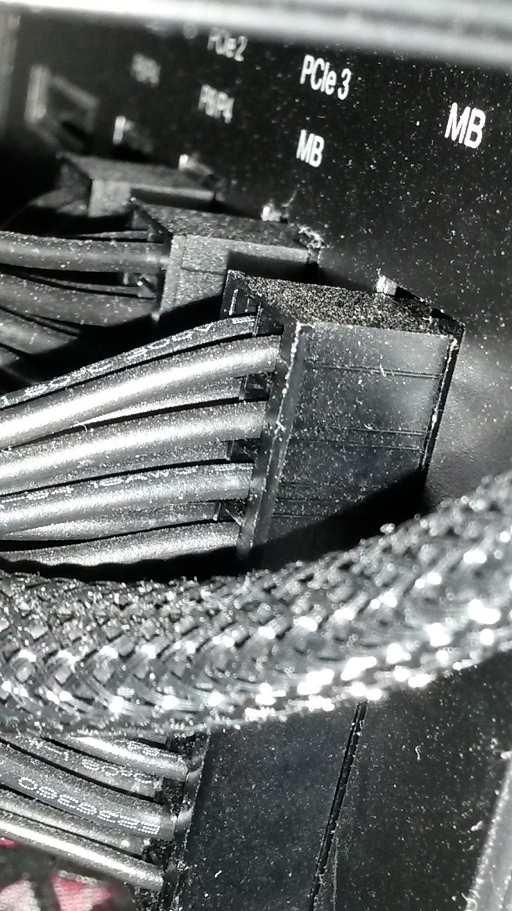 Am << PCIe 3 | MB >> hängt 1x ein 8 pin Stromkabel. (Nennt man das so?)