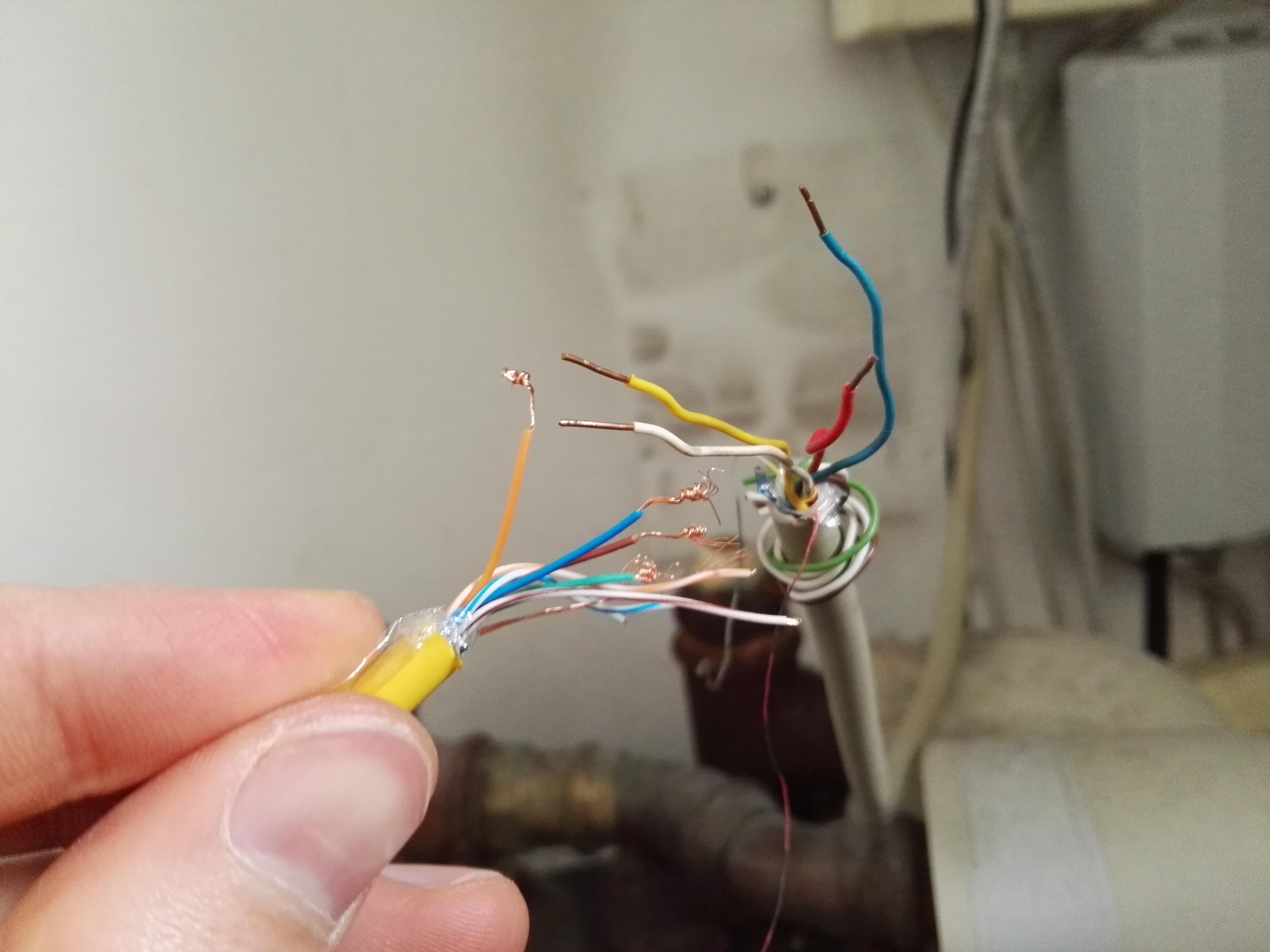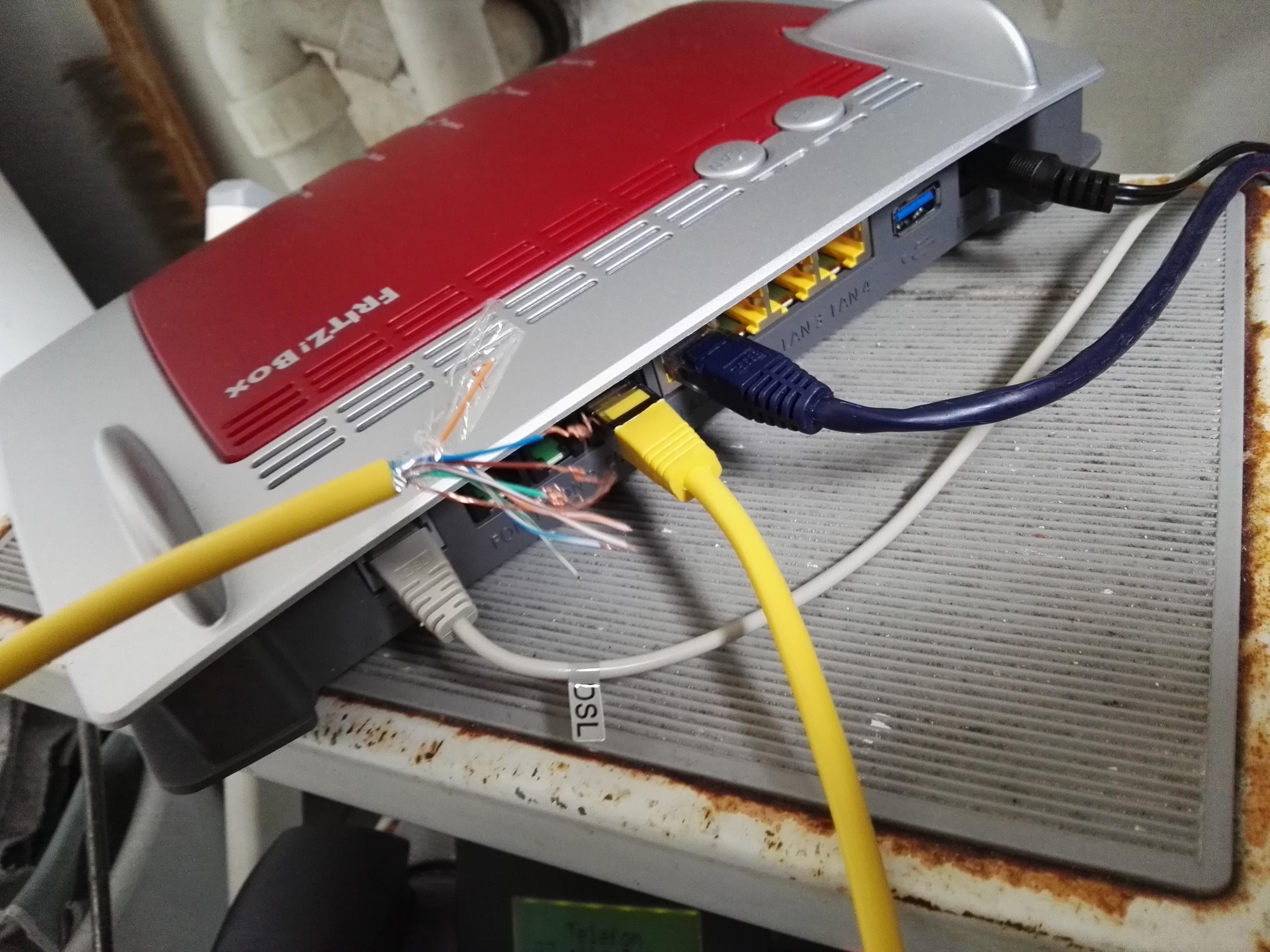 Was ich jedoch nicht bedacht habe: Das Telefonsignal aus der Fritz Box muss ja in das in der Wand verlegte Kabel gehen, so dass das Signal am Anschluss im Ergeschoss ankommt. Ich weiß allerdings nicht wo genau ich da was anschließen soll. Wenn ich es richtig analysiert habe, ist das Kabel in der Wand ein 4 adriges (rot, grün, gelb, weiß) starres Kabel ohne Stecker.