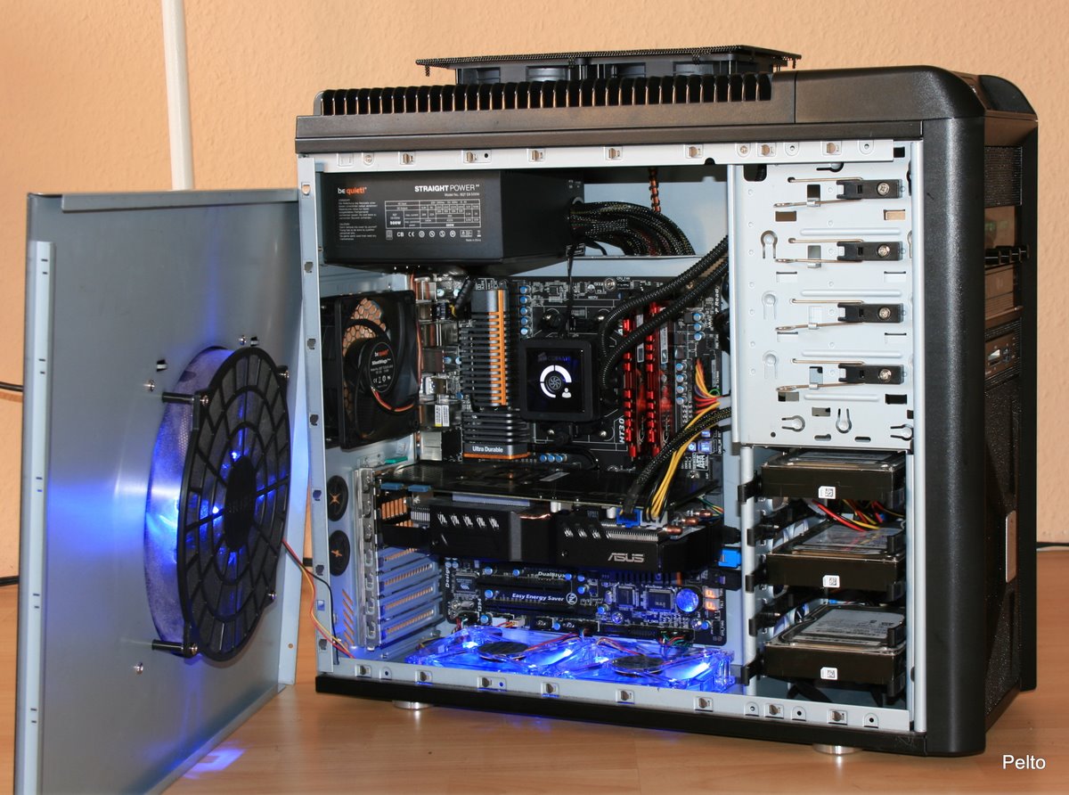 (Radioator im PC am oberem Gehäusedeckel, Lüfter außen, über dem Gehäuse,