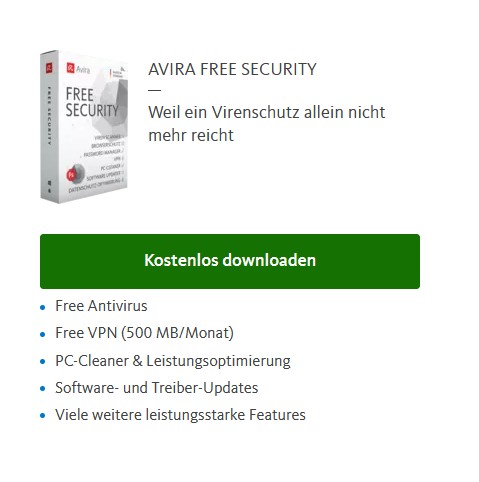 Genau, Cleaner, Leistungsverschlimmbesserung, Software und Treiberupdates aus der Aviraquelle ..... und wenn s beim Zocken ruckelt einfach den Gaming VPN an)