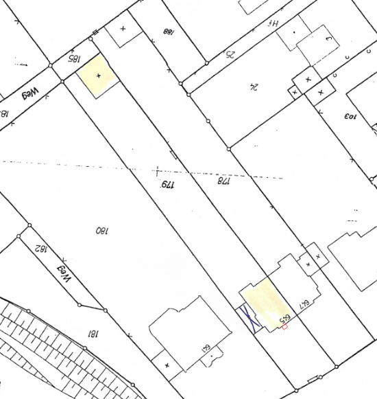 "Flurstücksplan mit Kennzeichnung der gewünschten Hauseinführung."