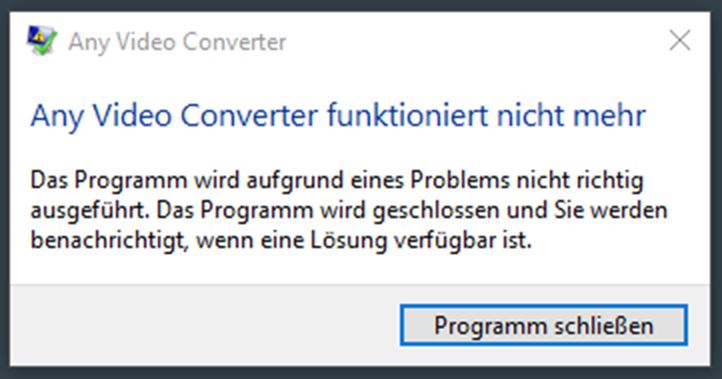 „mpg nach mp4“ die Meldung "Any Video Converter funktioniert nicht mehr".