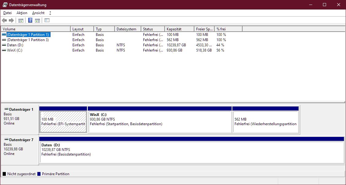 Ich habe kurz nach der Neu Installation eine geteilte NVme SSD wieder zusammengeführt, weil die extra Partition dort nicht benötigt wurde.