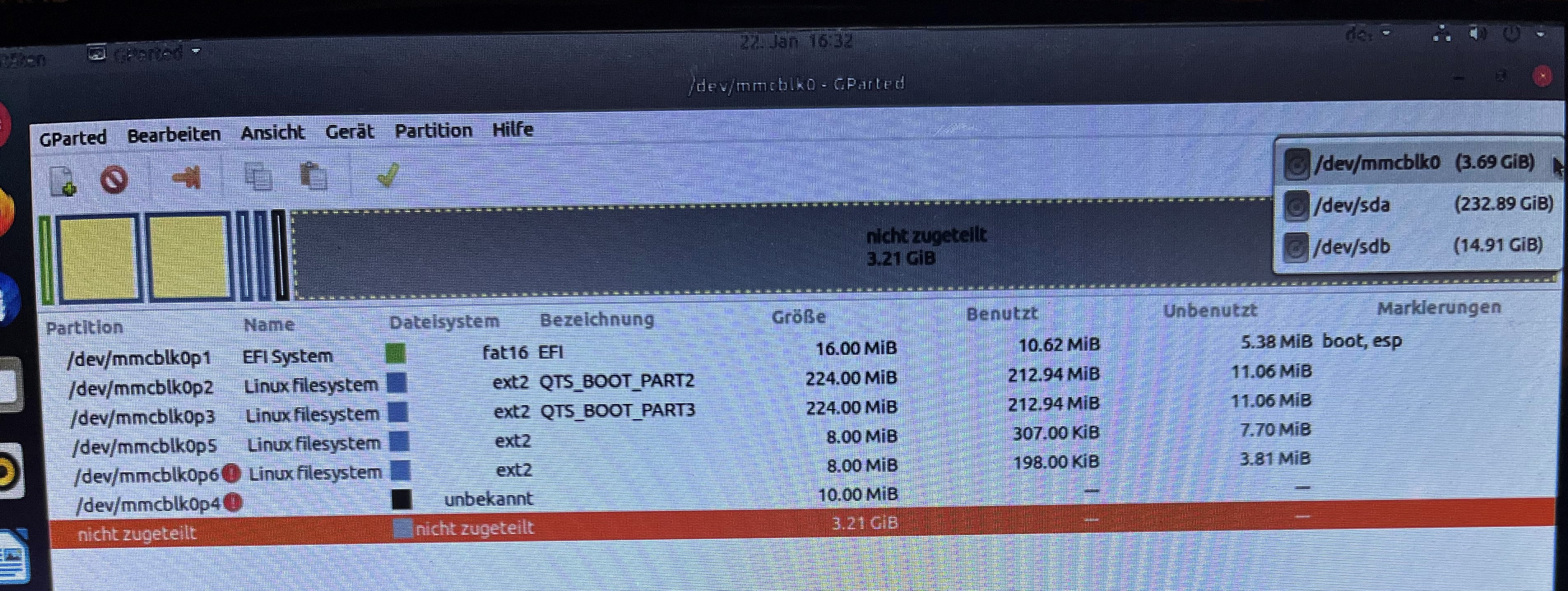 Festplatte /dev/mmcblk0: 3,7 GiB, 3959422976 Bytes, 7733248 Sektoren