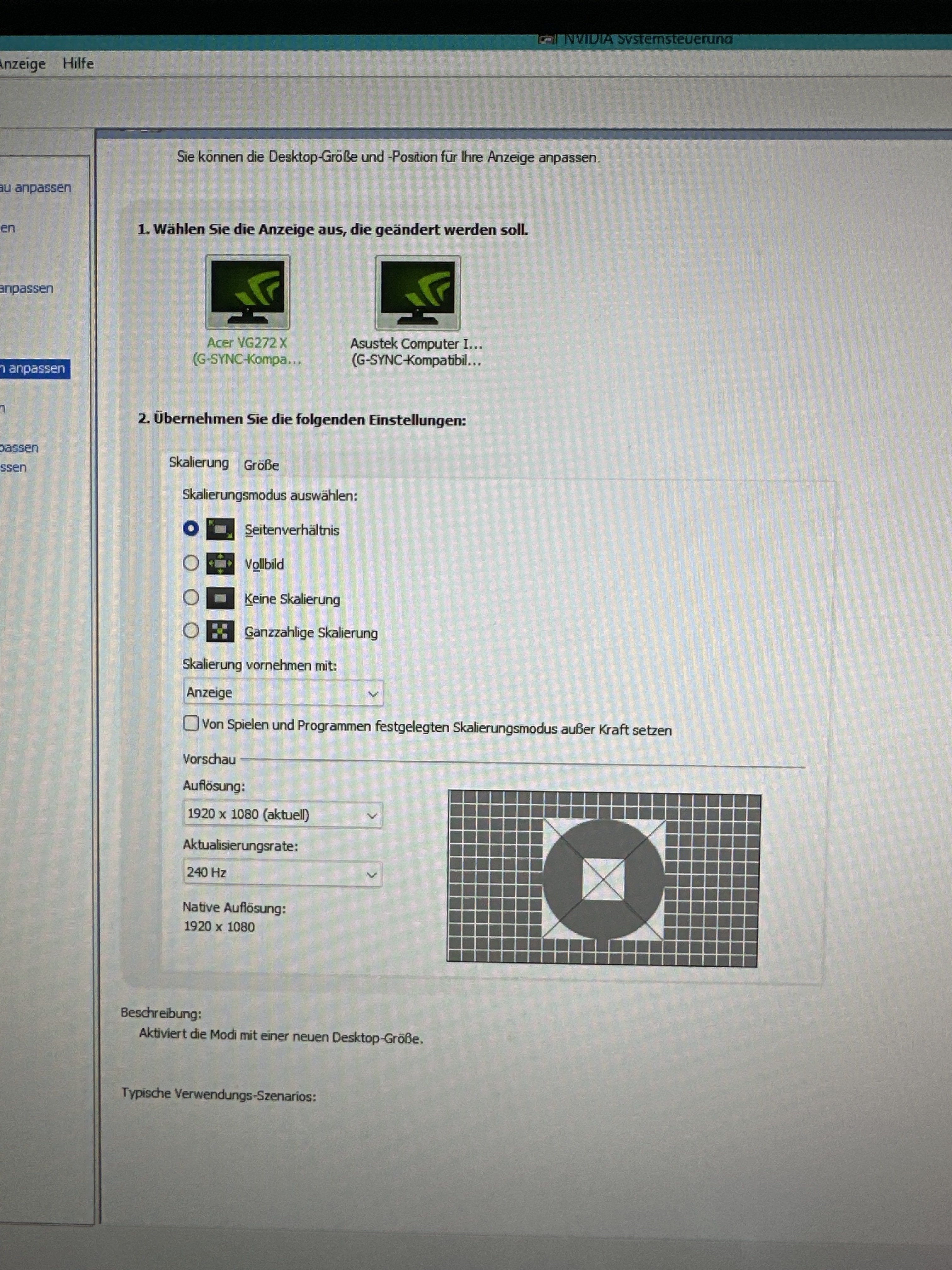 Ich habe die Windows Anzeigeinstrumenten überprüft (Skalierung und Bildschirmauflösen) und es steht alles auf empfohlen (100% und 1920x80).