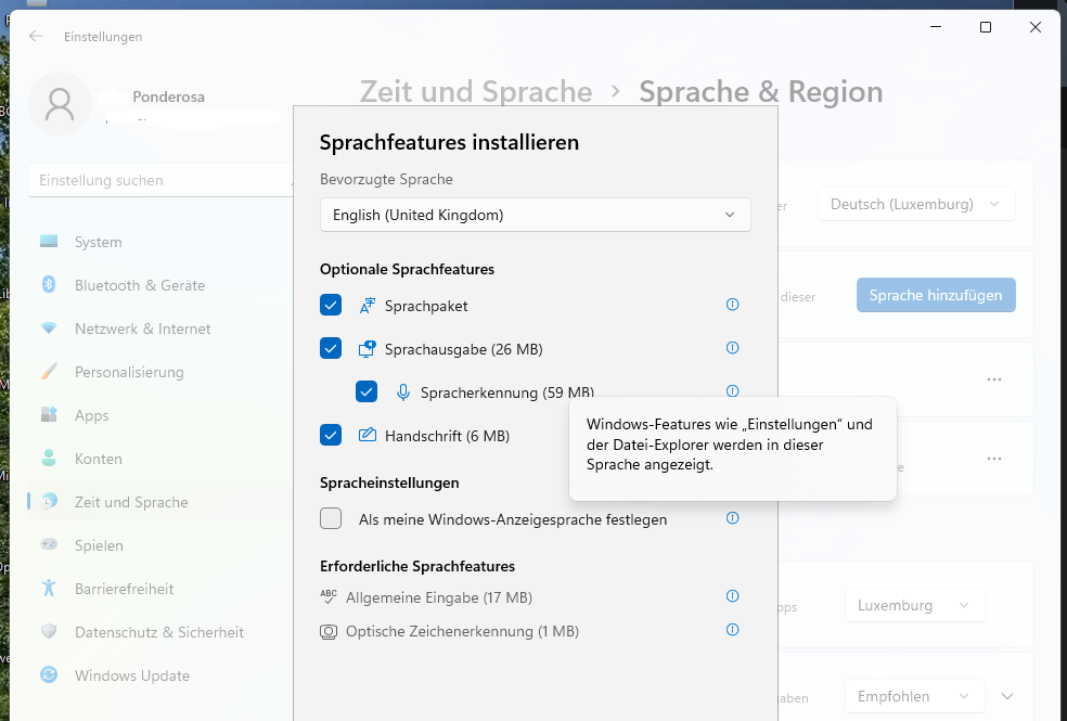 ich habe sowohl die Region als auch die Anzeigesprache auf Deutsch umgestellt, aber es ist eine Mischung aus deutsch und englisch.