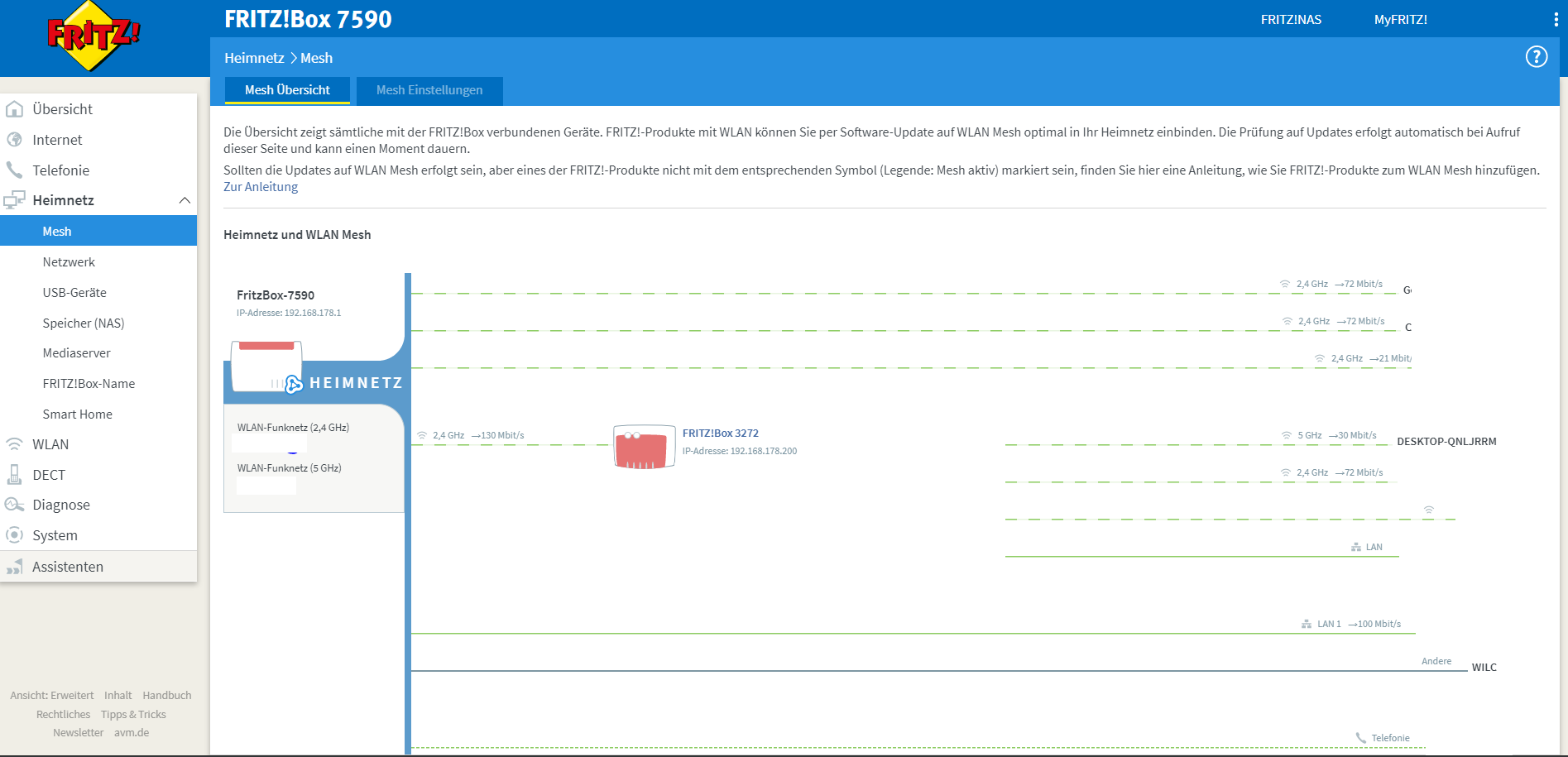 Fritzbox 3272 als Repeater verwendet verbindet sich über das 2,4er Netz mit dem Router (der Name des 2,4er Netzes ist als zu verwendendes Netzwerk ausgewählt und es wird auch so angezeigt) und spannt ein weiteres, wiederum anders benanntes Netz auf 2,4 GHz auf.