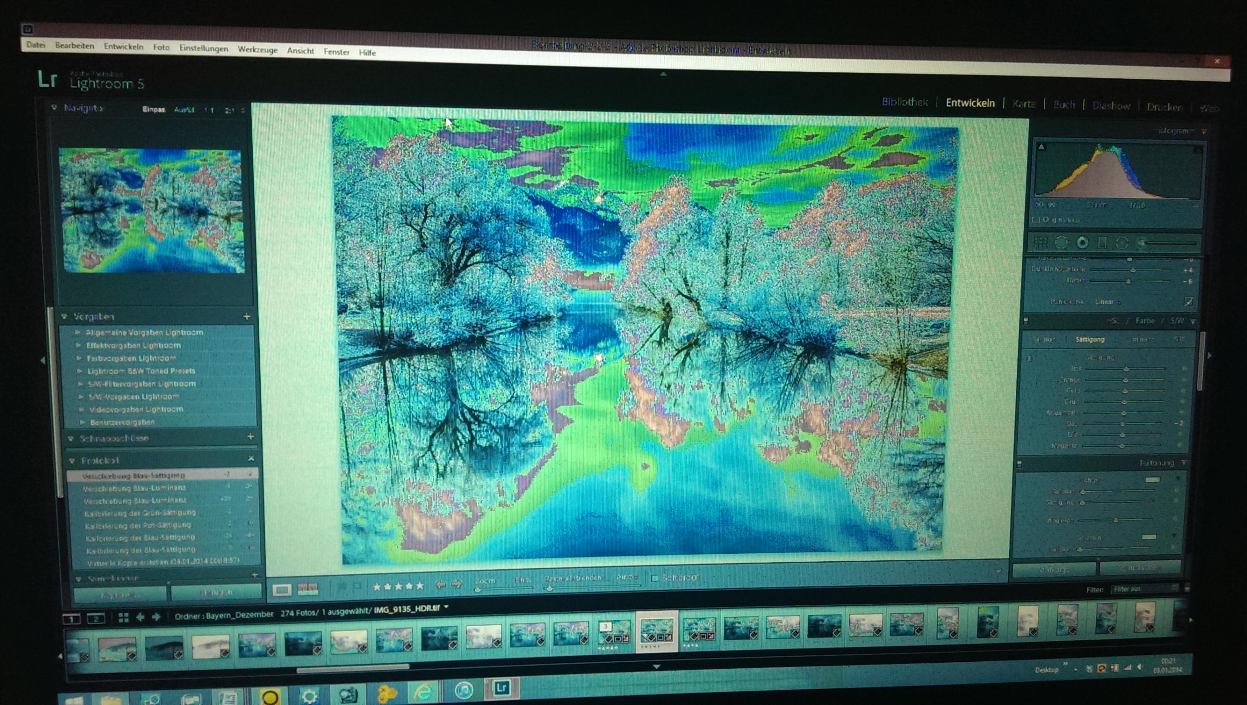 Die Bildschirmanzeige wird "krisselig" und sieht aus als hätte man einem Solarisationseffekt drüber gelegt. Der Effekt ist mal mehr mal weniger stark. Im Anhang mal ein Foto der Anzeige während der falschen Anzeige. Der Fehler taucht auch bei geschlossenen Programmen direkt nach dem Hochfahren auf.