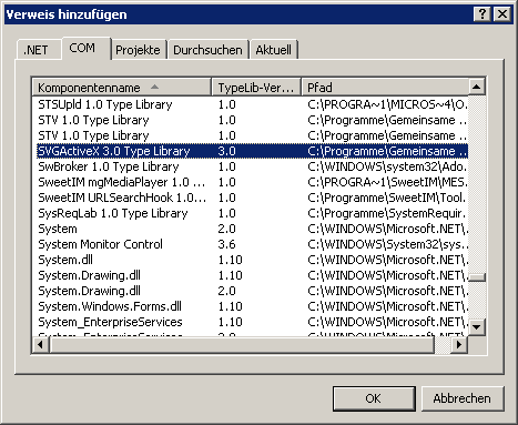 Eine dll musst du nicht einbinden, du musst den Adobe SVG Viewer installieren, der sollte dann ein ActiveX Control registrieren.